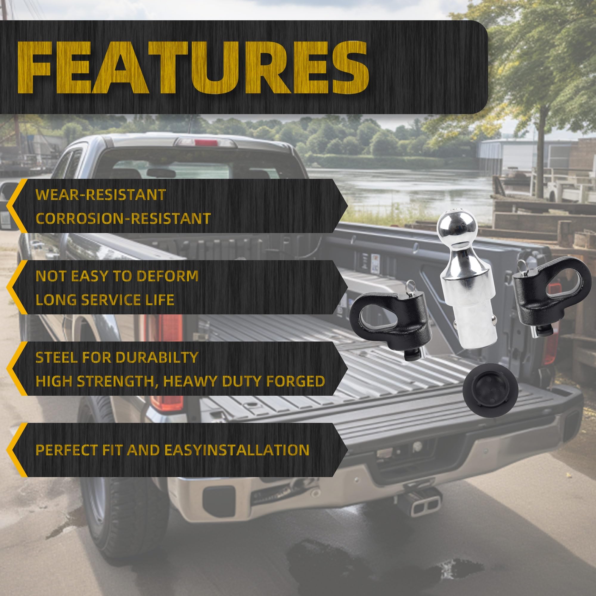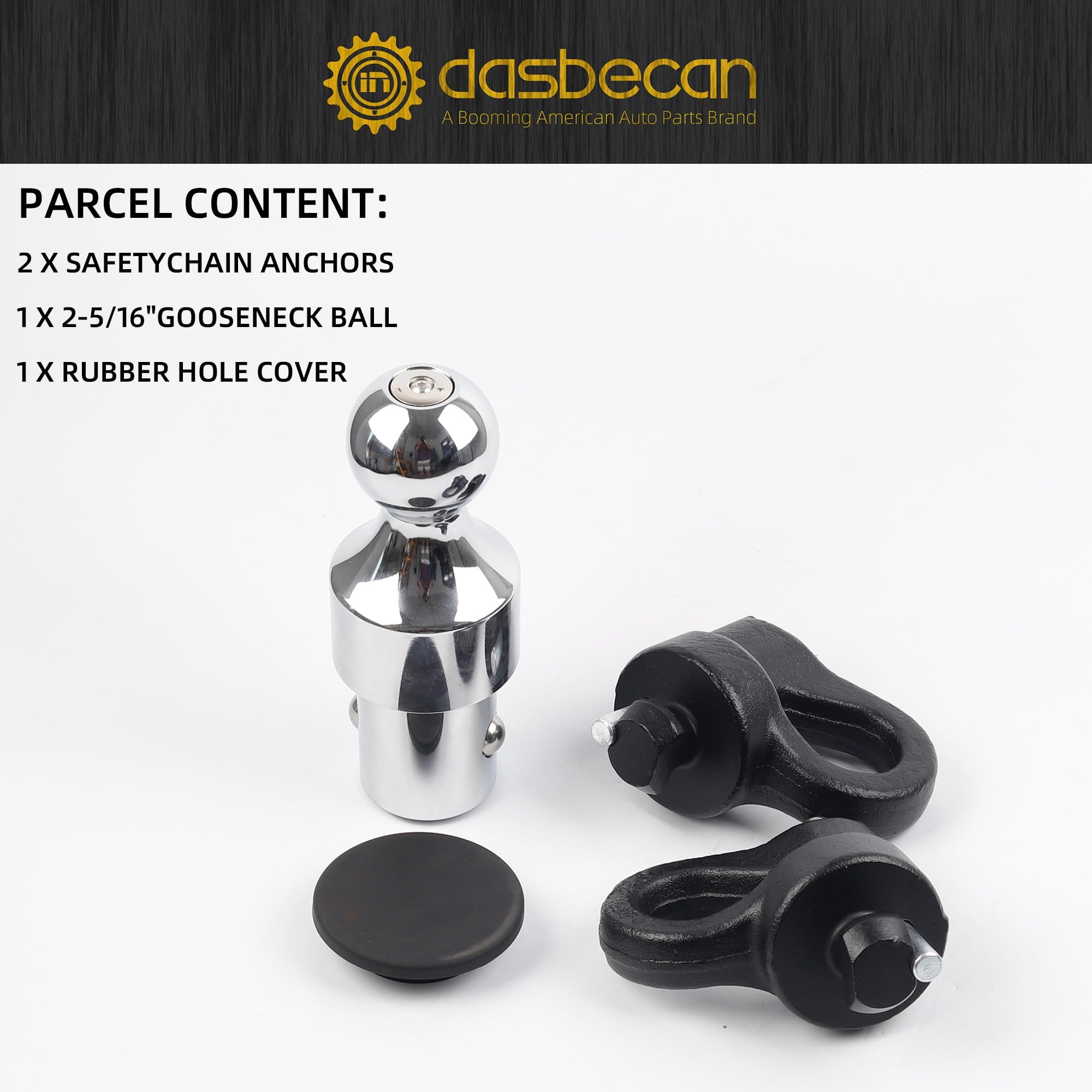 【Package Included】1x 38k Gooseneck Ball 2x Anchor Points 1x Rubber Hole Cover