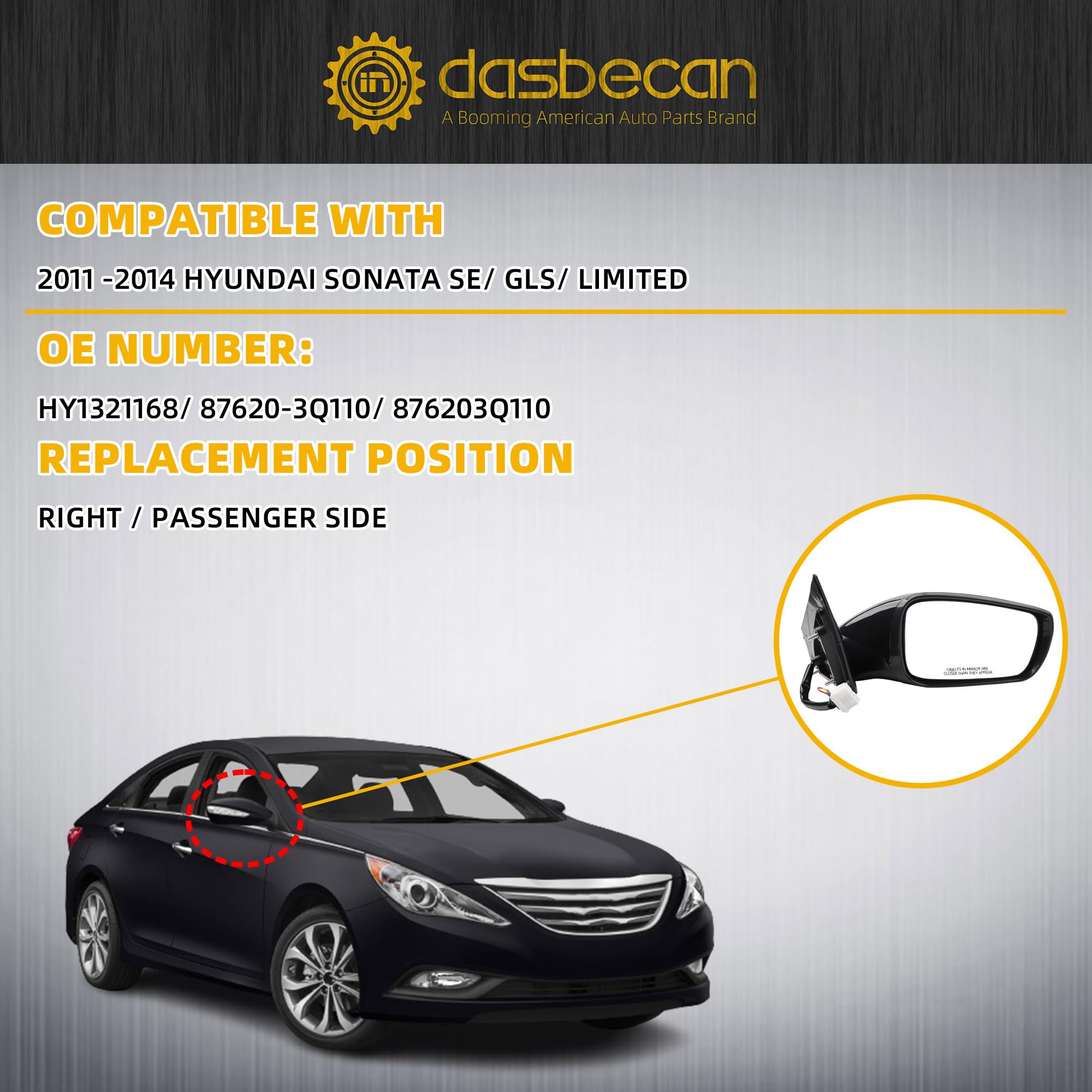 【Comaptible With】The Black Right Side Door Mirror Compatible With 2011 2012 2013 2014 Hyundai Sonata SE/ GLS / Limited(7Pin)