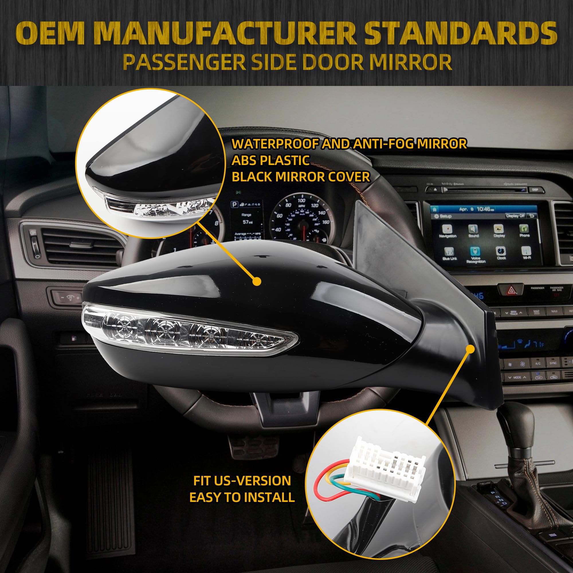 【Feature】The Right Door Side Mirror Equipped With Power Glass, LED Turn Signal, Power Heated And Manual Folding Functions. Without Blind Spot. Black Mirror Cover, Match Car body's paint