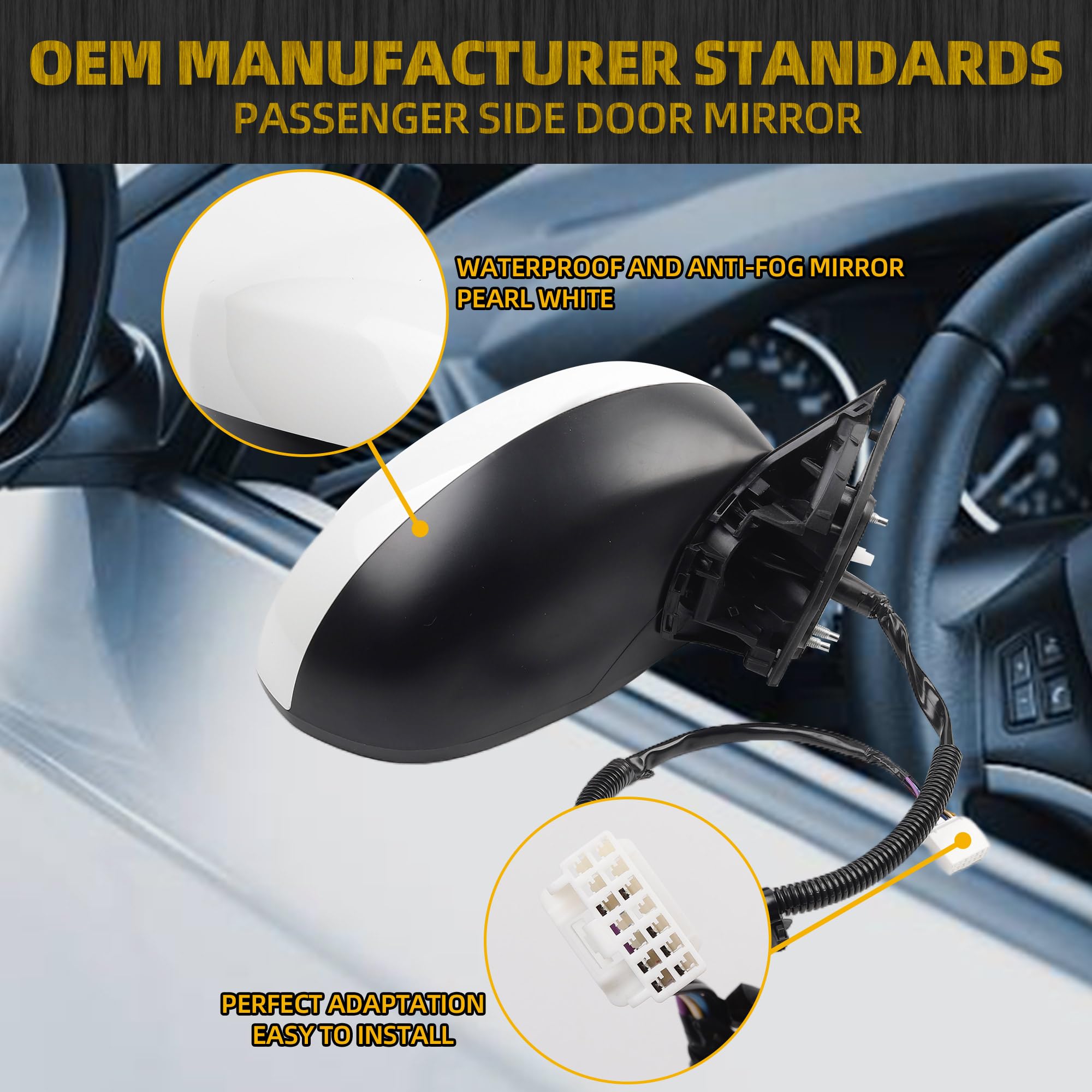【Note】The Rearview Mirror Is Passenger Side, Functions Include Power Heating, Blind Spot Indicator And Manual Folding. It Fits 7 Pin Mirror Assembly Only