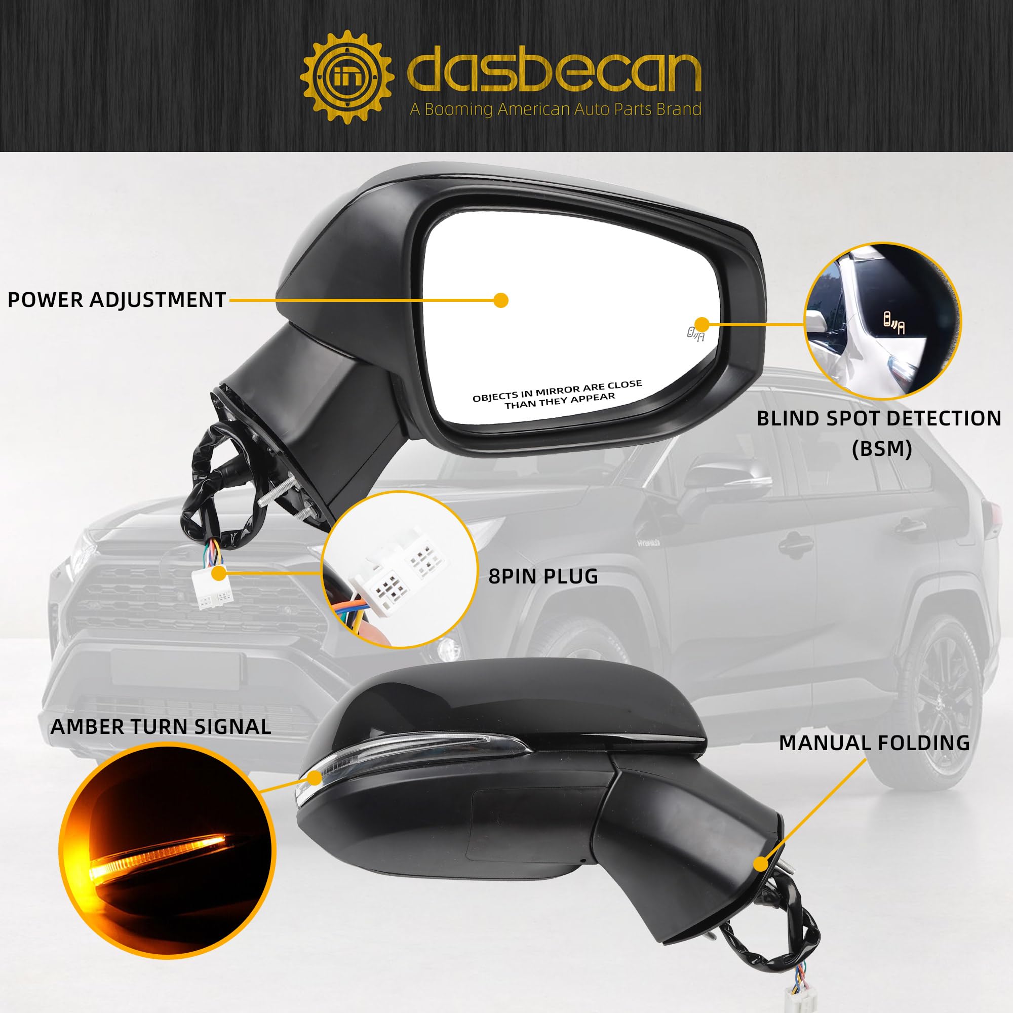 【Note】The Color Of The Side Mirror Is Midnight Black Metallic, It Fits 8 Pins Toyota Rav4 Right Mirror. Match US-Version, No Needs For Other Accessories, Easy Installation