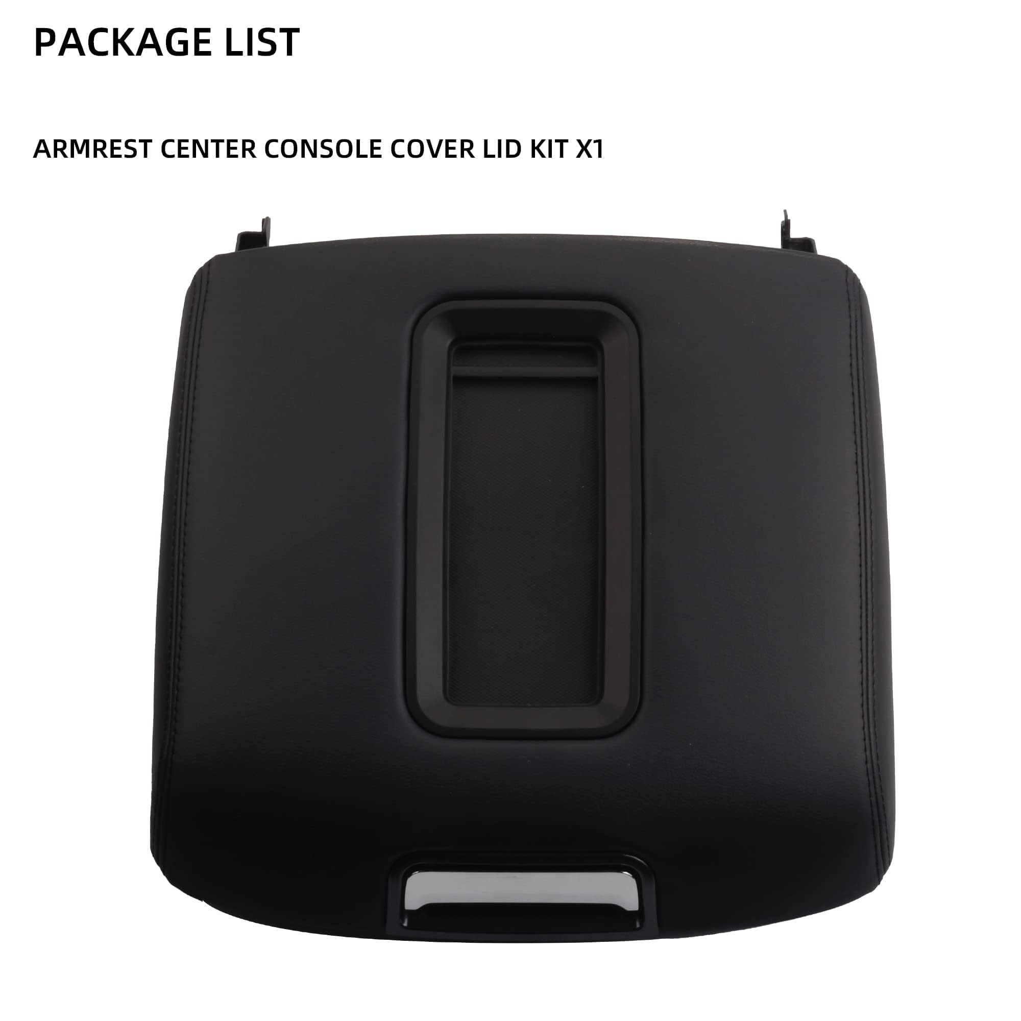 【Package list】Armrest Center Console Cover Lid Kit x1. Attention: Please install the armrest cover together with our base. Do not remove the armrest cover and install it on the original base. We have upgraded the product, and the screw holes of the original back cover are different from our's