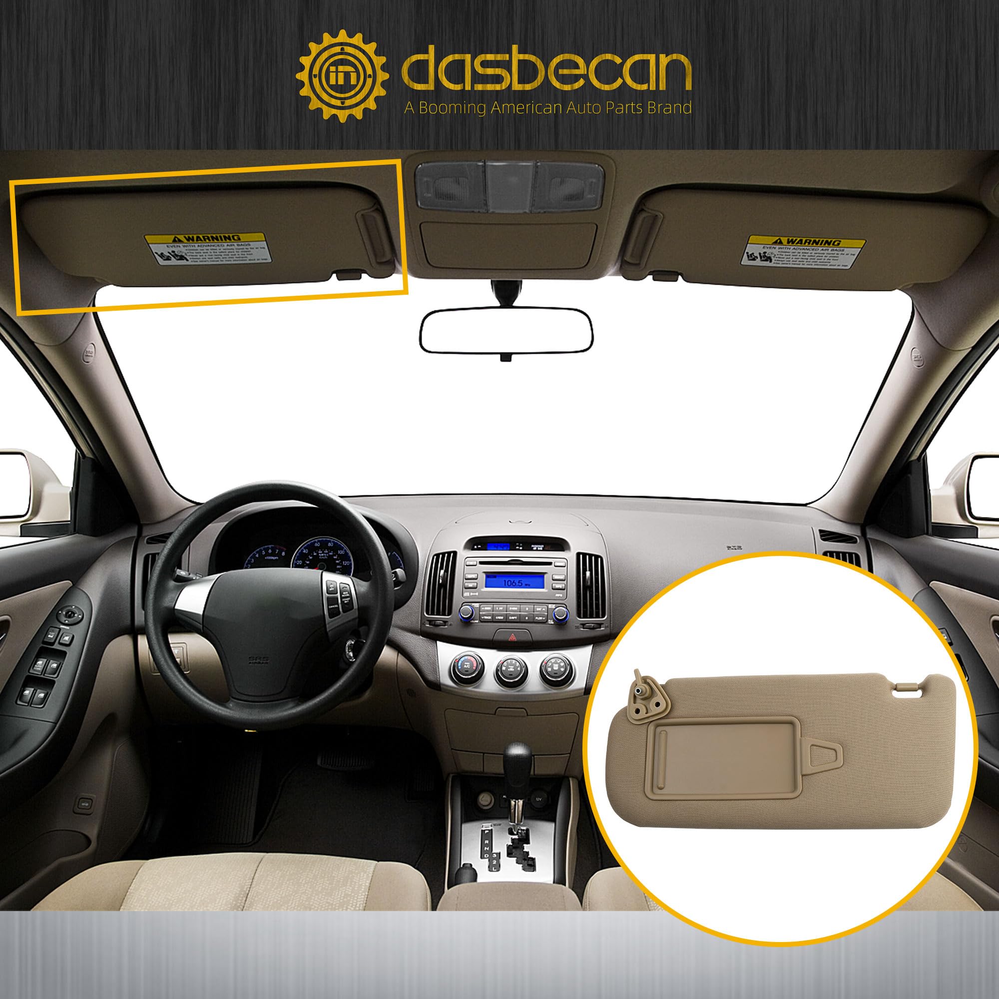 【Description】Beige Left Driver Side Sun Visor Sun Shade with Vanity Mirror