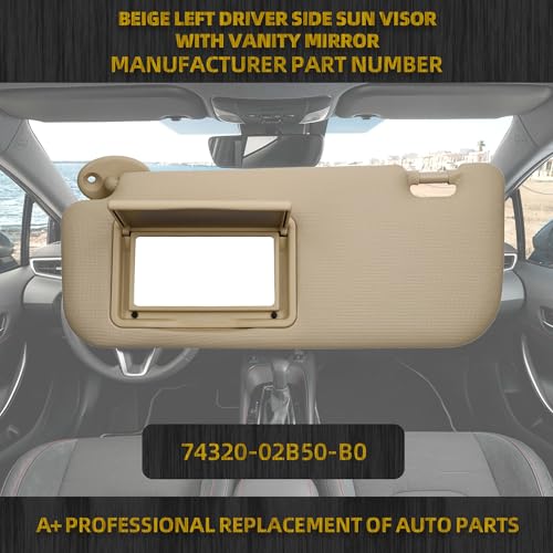 【Description】Beige Left Driver Side Sun Visor with Vanity Mirror