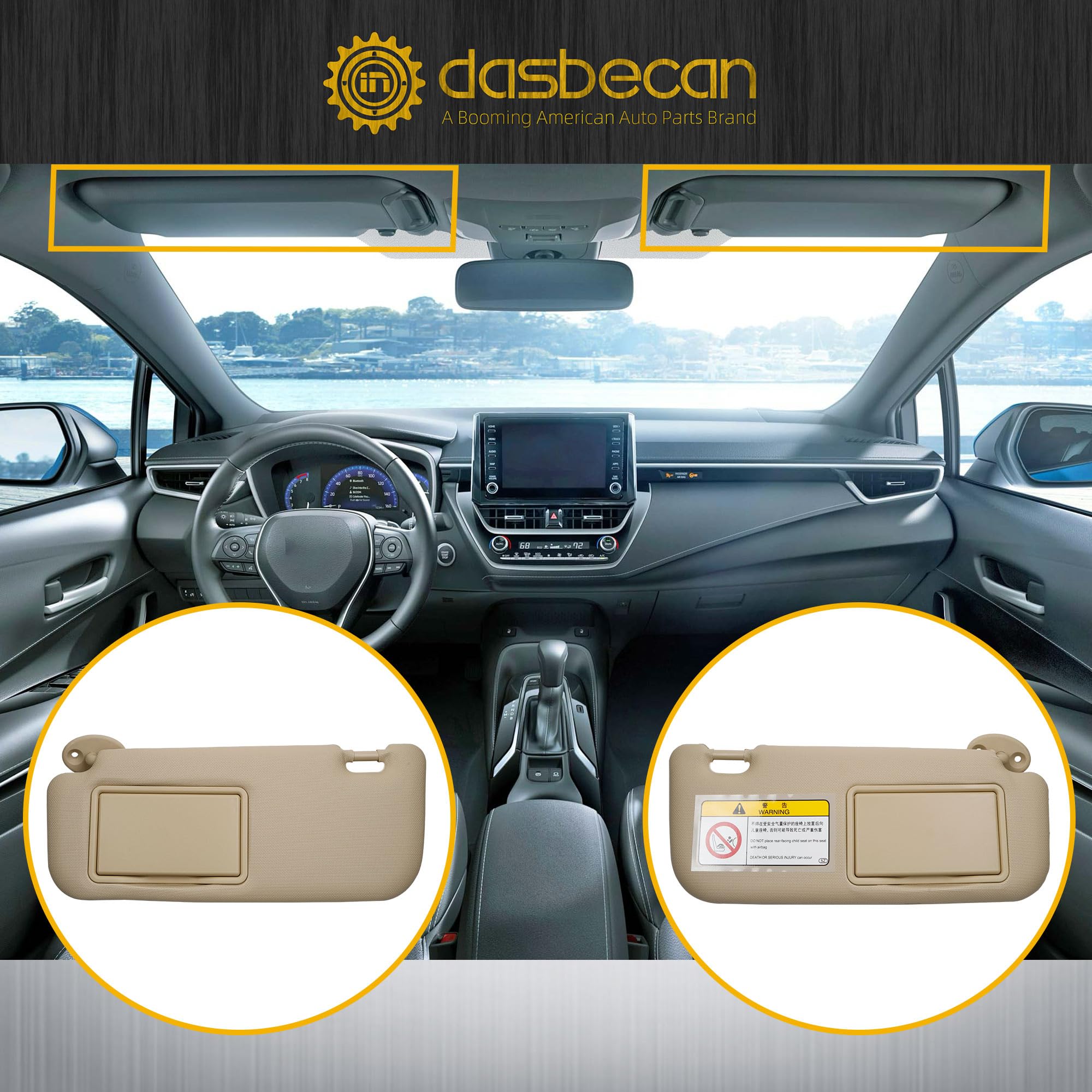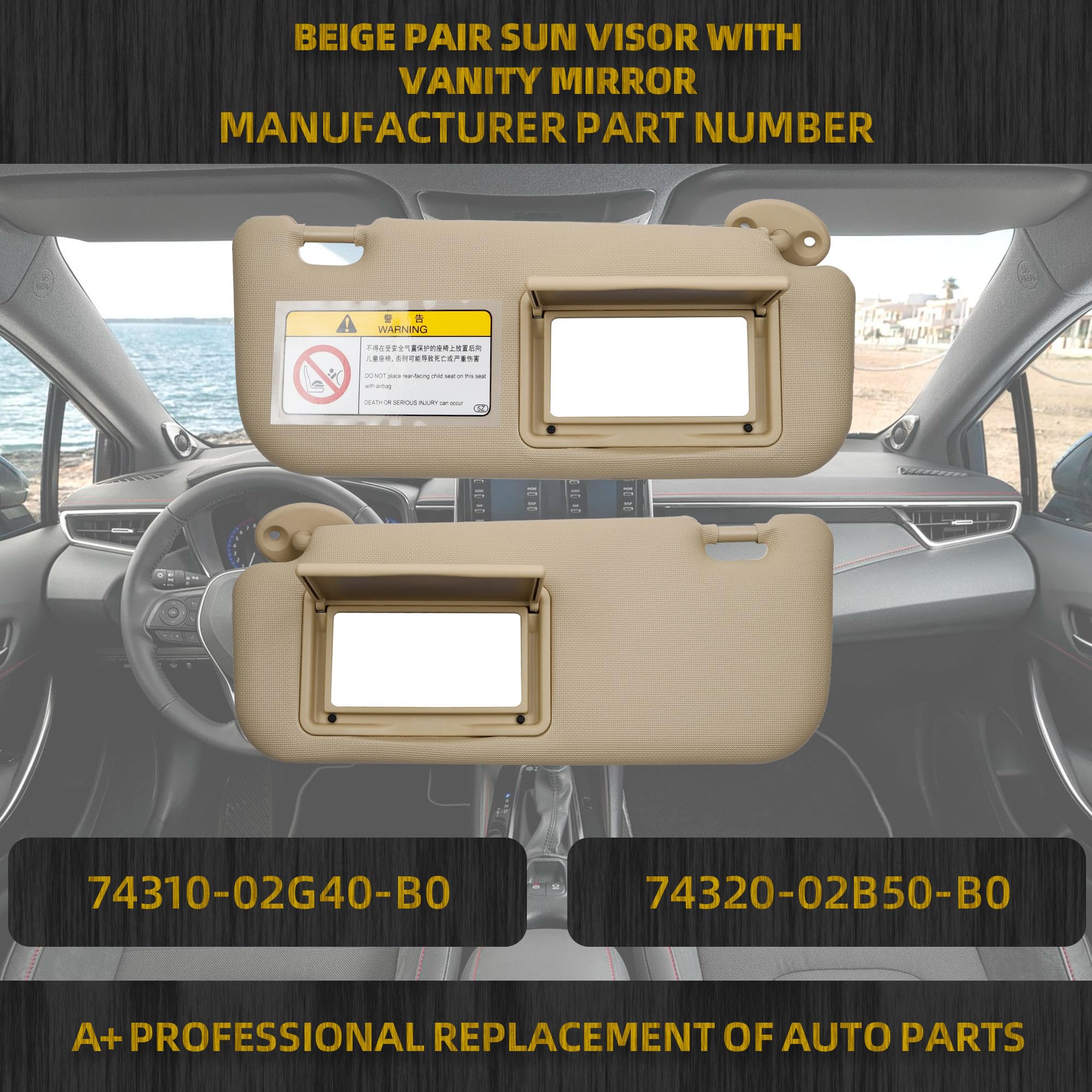 【Description】Beige Left Driver & Right Passenger Side Sun Visor Sun Shade with Vanity Mirror