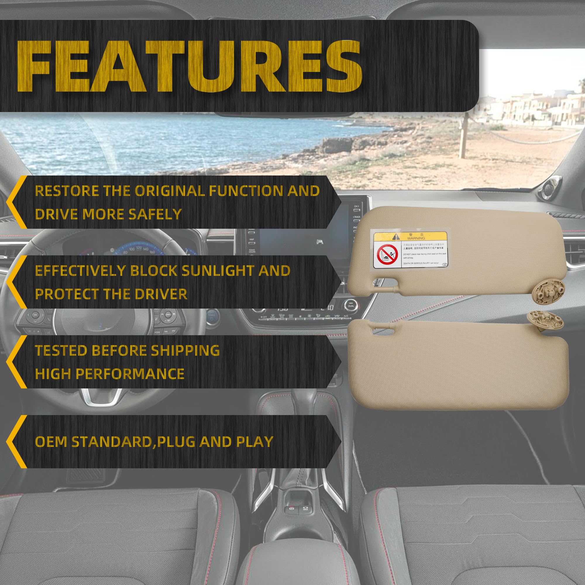 【Package List】Left Driver Side Sun Visor x 1pc,Right Passenger Side Sun Visor x 1pc
