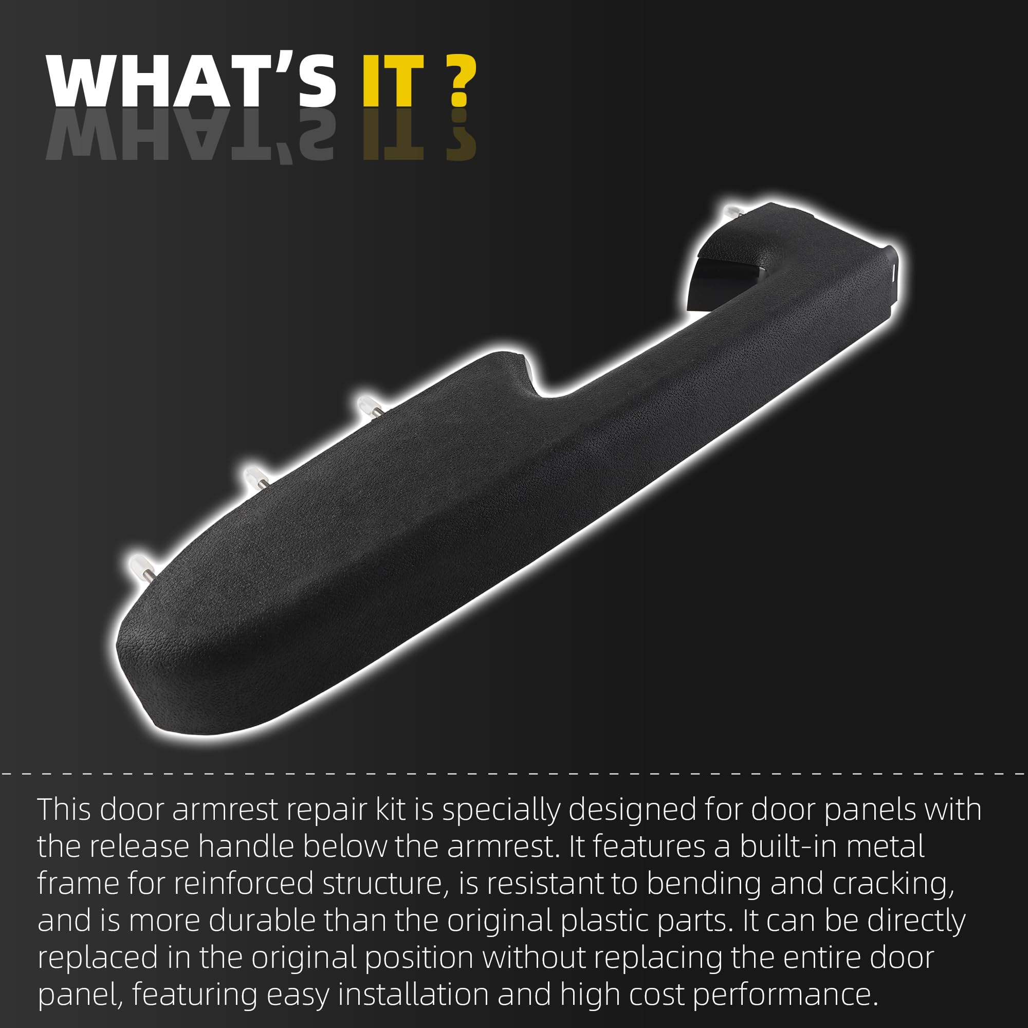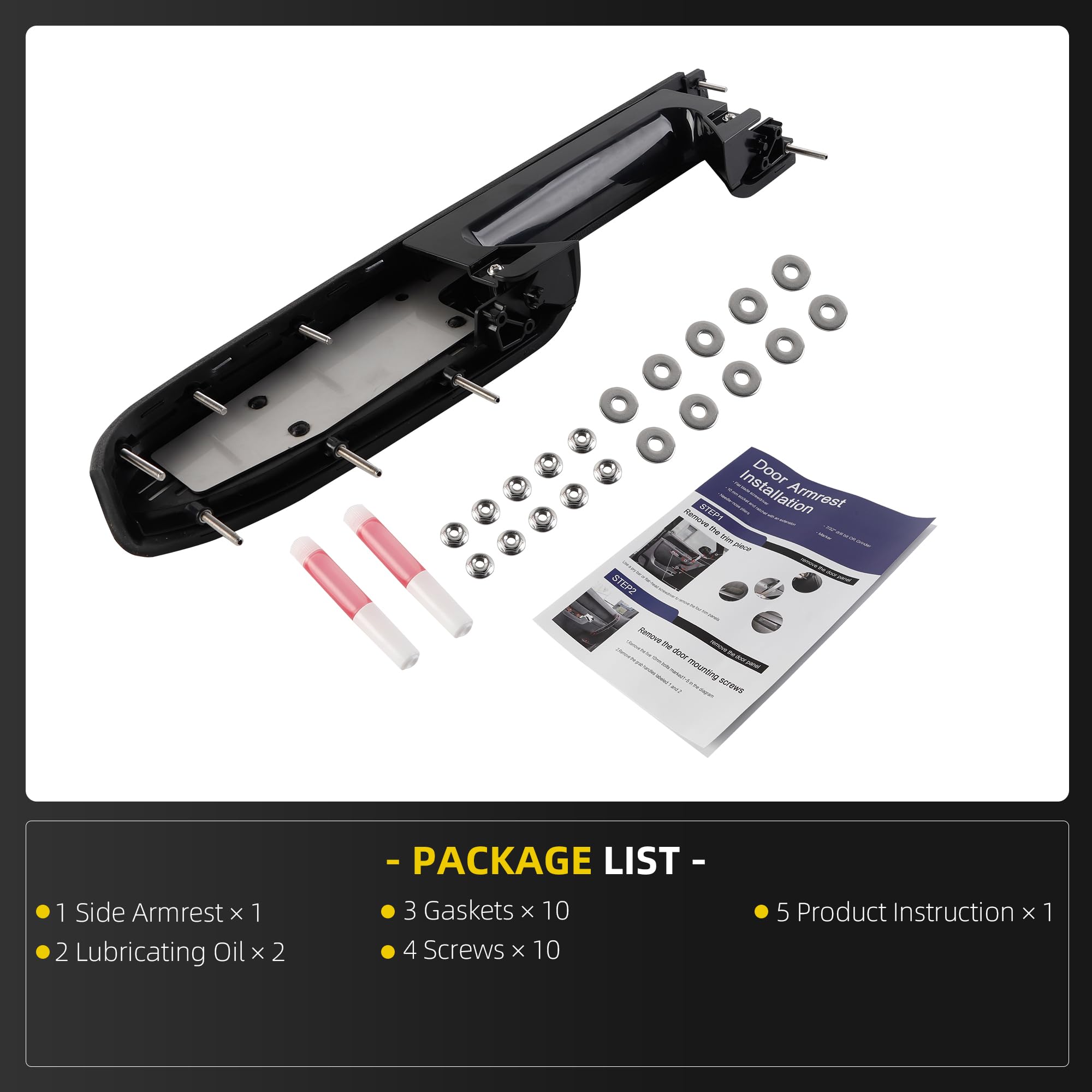 【Product Introduction】Black Armrest Repair Kit Left Driver Side with parts, item weight of 0.694 kg.Packaging Specifications: 49.30 × 13.40 × 6.20 cm