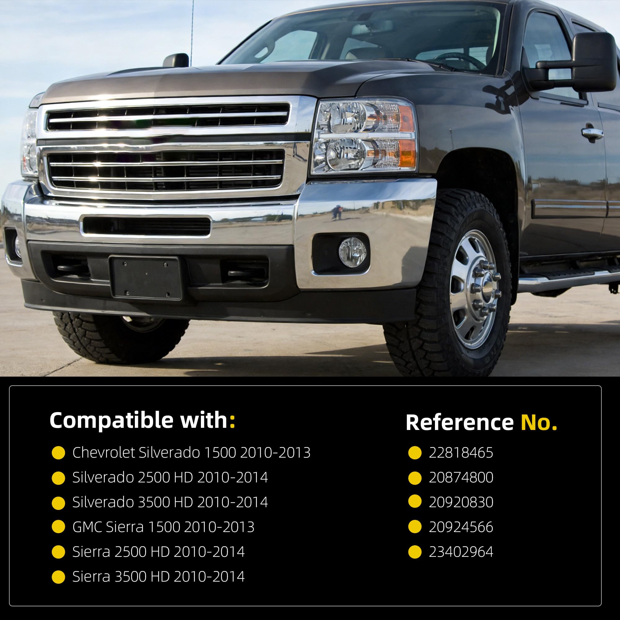 【Comptiable With】 Chevrolet Silverado 1500 2010-2013, Silverado 2500 HD 2010-2014, Silverado 3500 HD 2010-2014, GMC Sierra 1500 2010-2013, Sierra 2500 HD 2010-2014, Sierra 3500 HD 2010-2014;