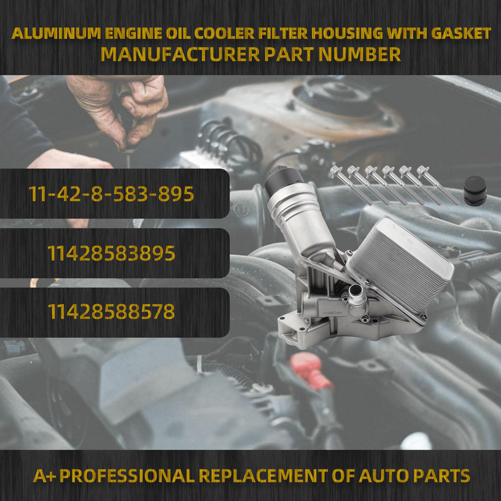 【Feature】Made of Upgraded ALUMINUM, which is higher strength, high tensile strength, waterproof, wear-resistant, corrosion resistant, heat resistant. The engine oil cooler assembly is easy to install.