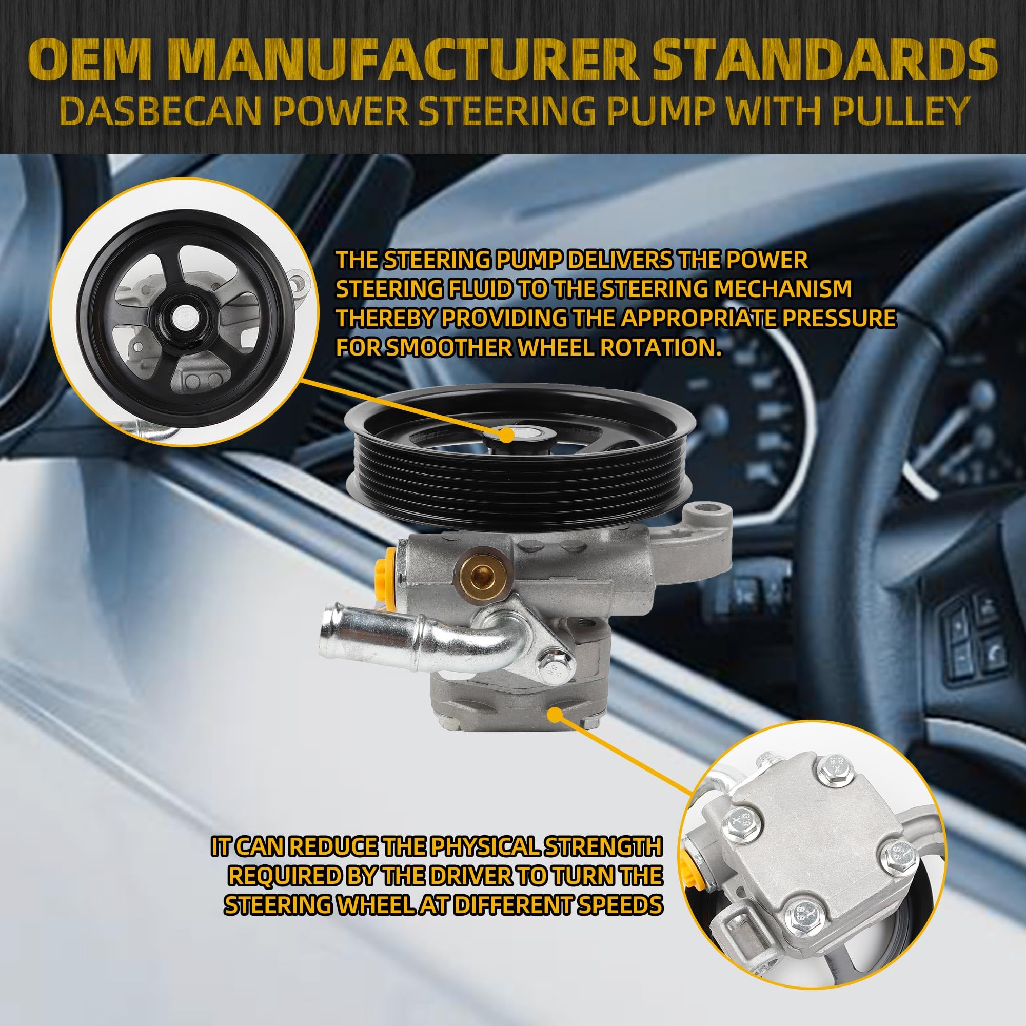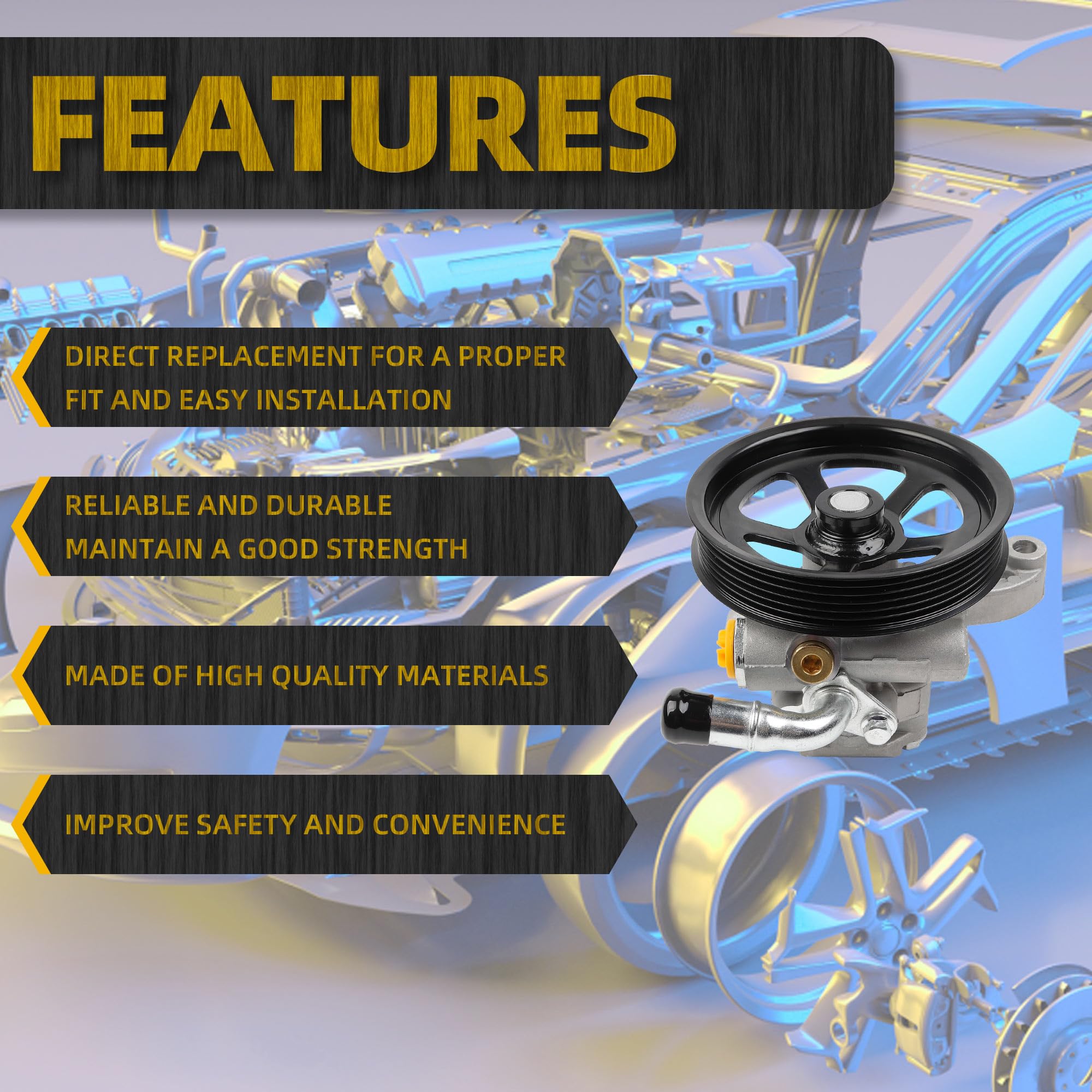 【Enhanced Control】Our Power Steering Pump contributes to better steering precision and responsiveness on the road. With improved handling and maneuverability, you'll have greater confidence in navigating around obstacles and potential hazards.