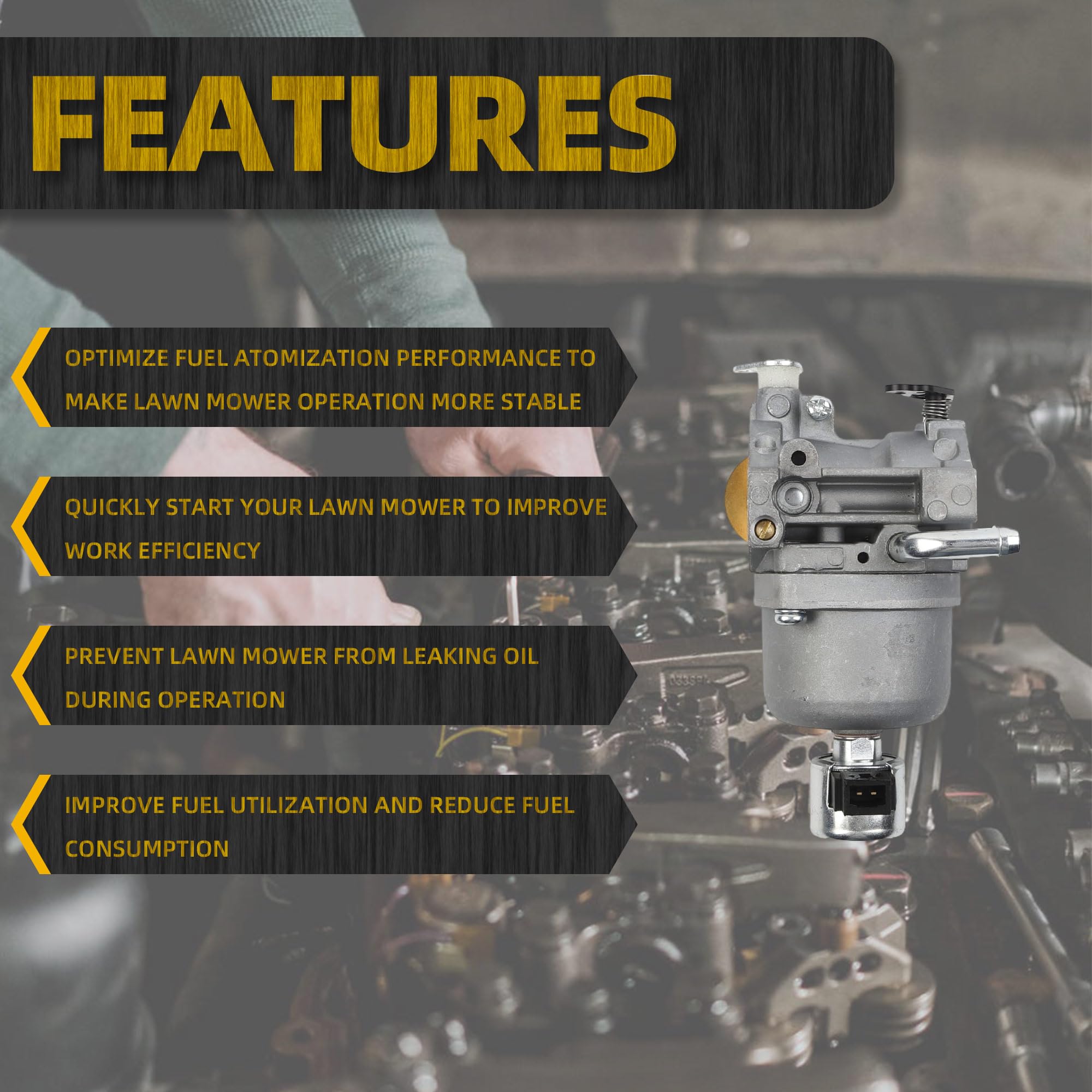 Function:Improve fuel utilization and reduce fuel consumption.Quickly start your lawn mower to improve work efficiency.Prevent lawn mower from leaking oil during operation.