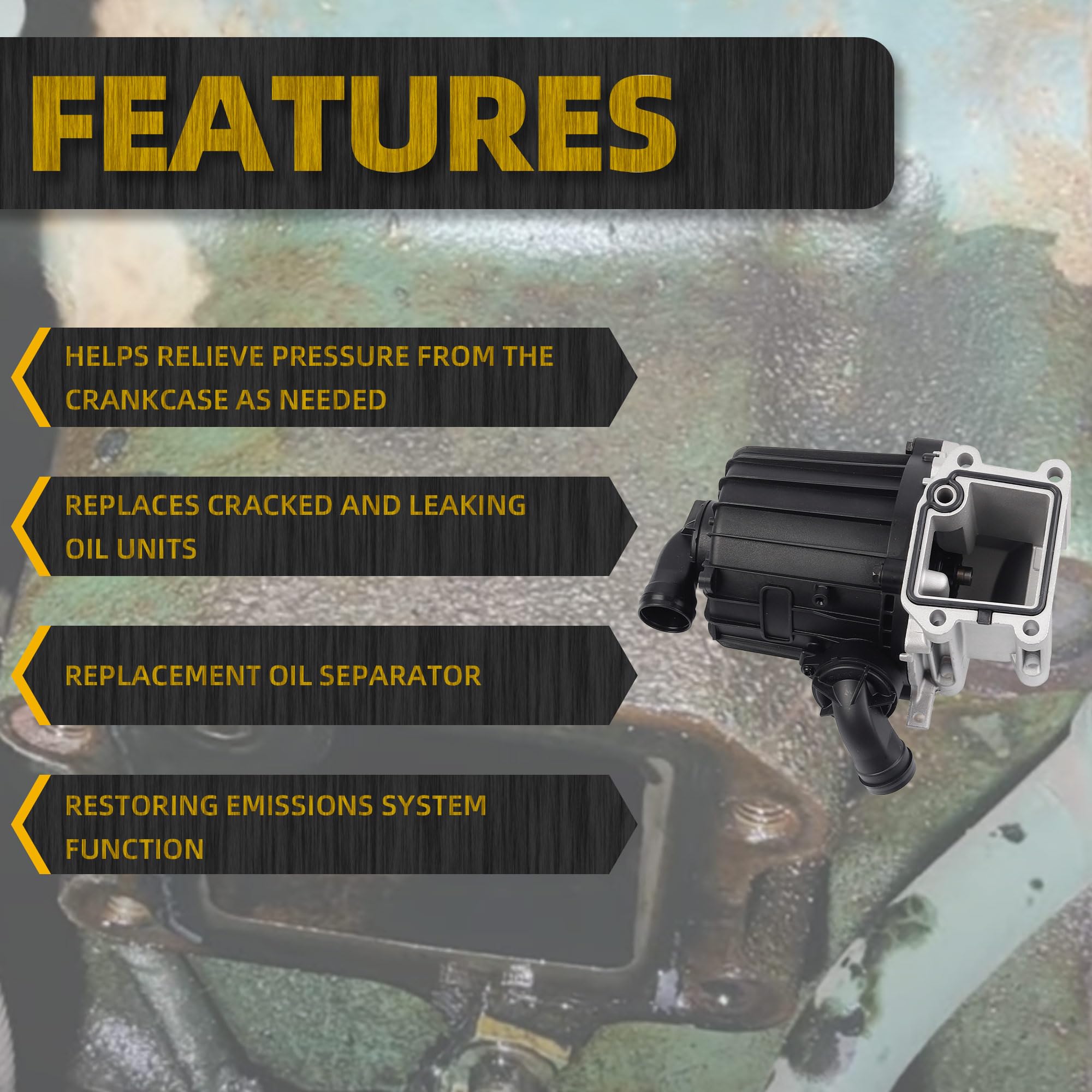 Enhanced Efficiency: The advanced design of the crankcase ventilation separator maximizes oil mist separation efficiency. This reduces the risk of engine damage caused by excessive oil consumption or clogging, improves combustion efficiency, and enhances overall engine performance.