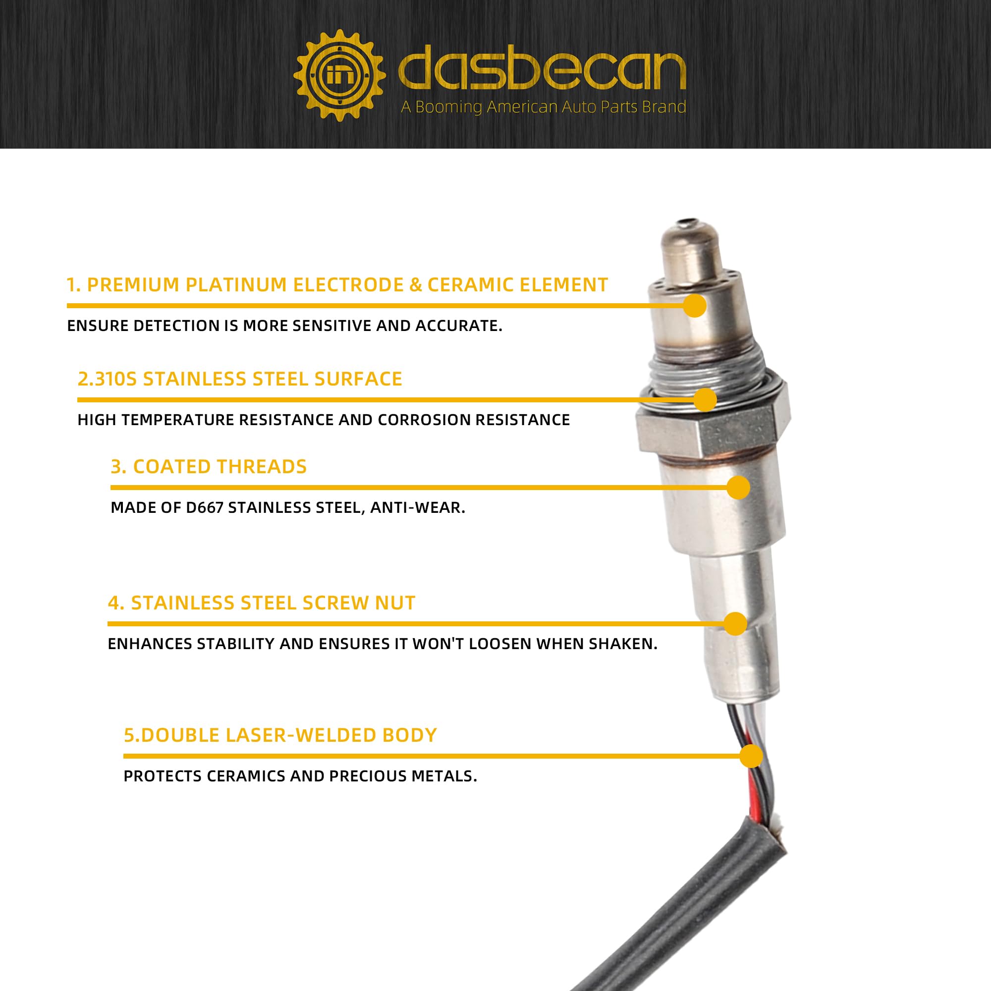 Precise Sensing & Sturdy Construction: Features platinum electrode & ceramic element for significantly enhanced detection sensitivity and accuracy.Sturdy laser-welded body seals and protects internal ceramics and precious metals, ensuring long-term stable performance.