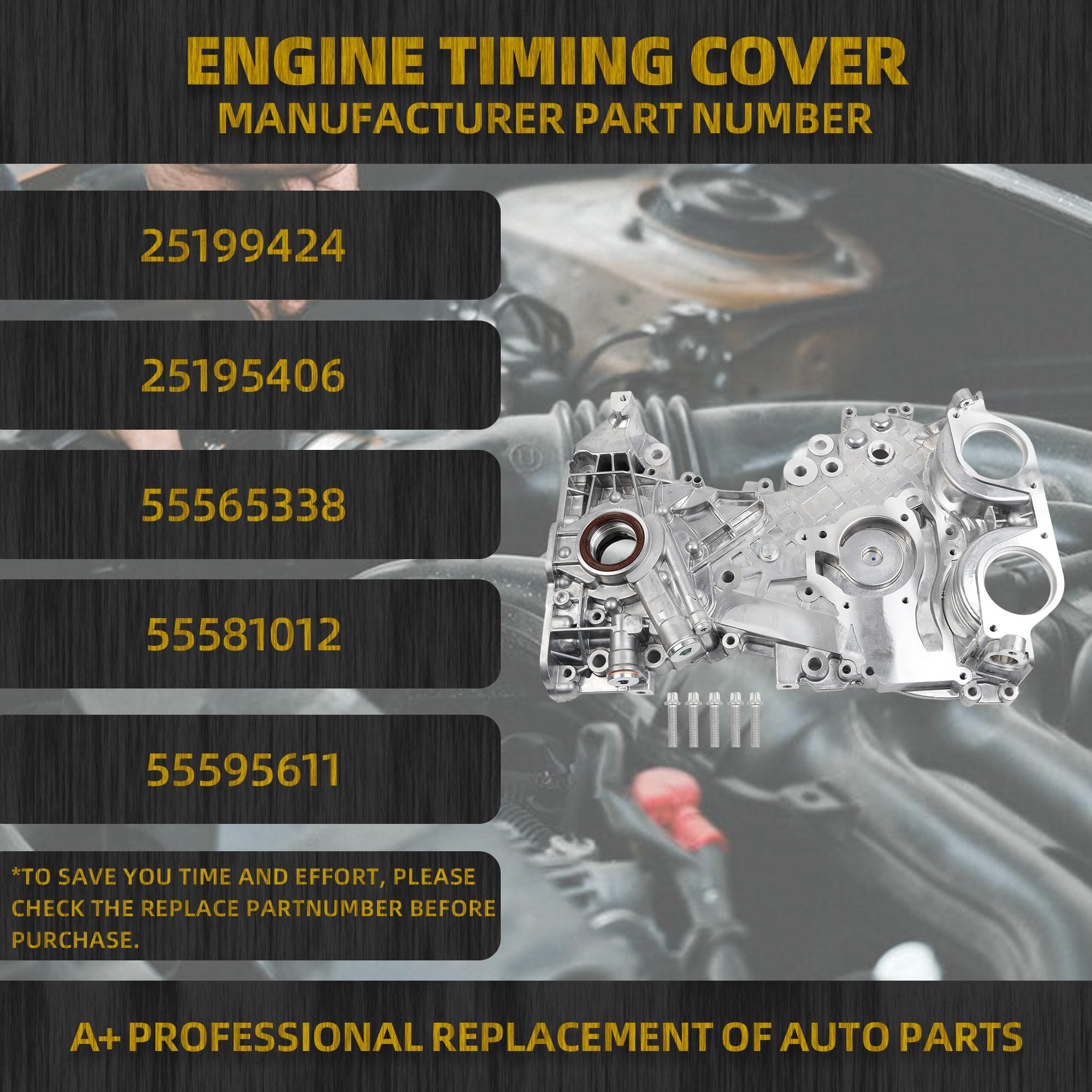【OE Standard】 The Timing Cover Meets Original Equipment (OE) standards with interchangeable part numbers: 25199424, 25195406, 55565338, 55581012, 55595611.