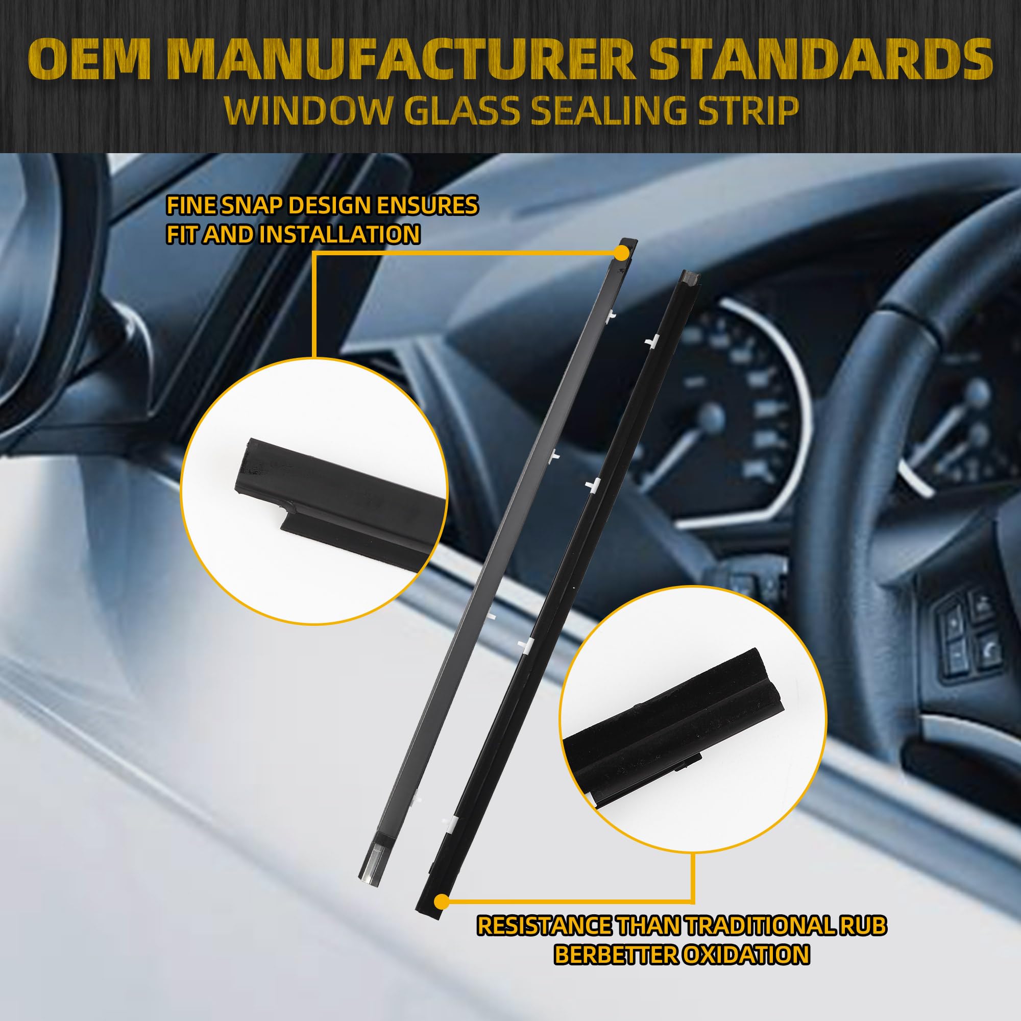 【Package list】Front Outer Door Window Belt Weatherstrip x2pcs ( LH driver side x1pc; RH passenger side x1pc).