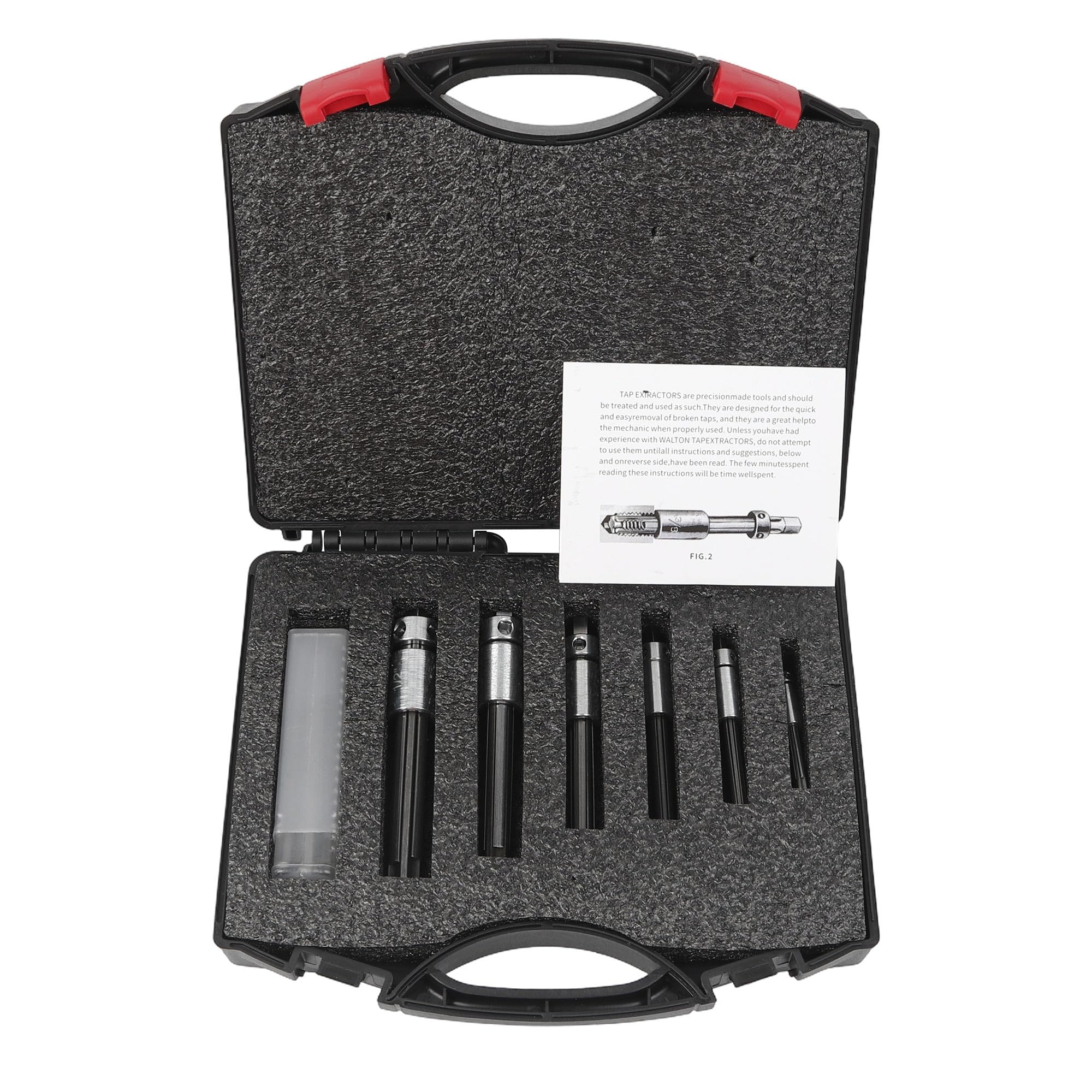 【Product Features】This extractor set comes with a black portable case, featuring an internal molded foam liner and a red locking latch. It keeps the tap removal tools neatly organized and well-protected, while also making it easy to transport between job sites.