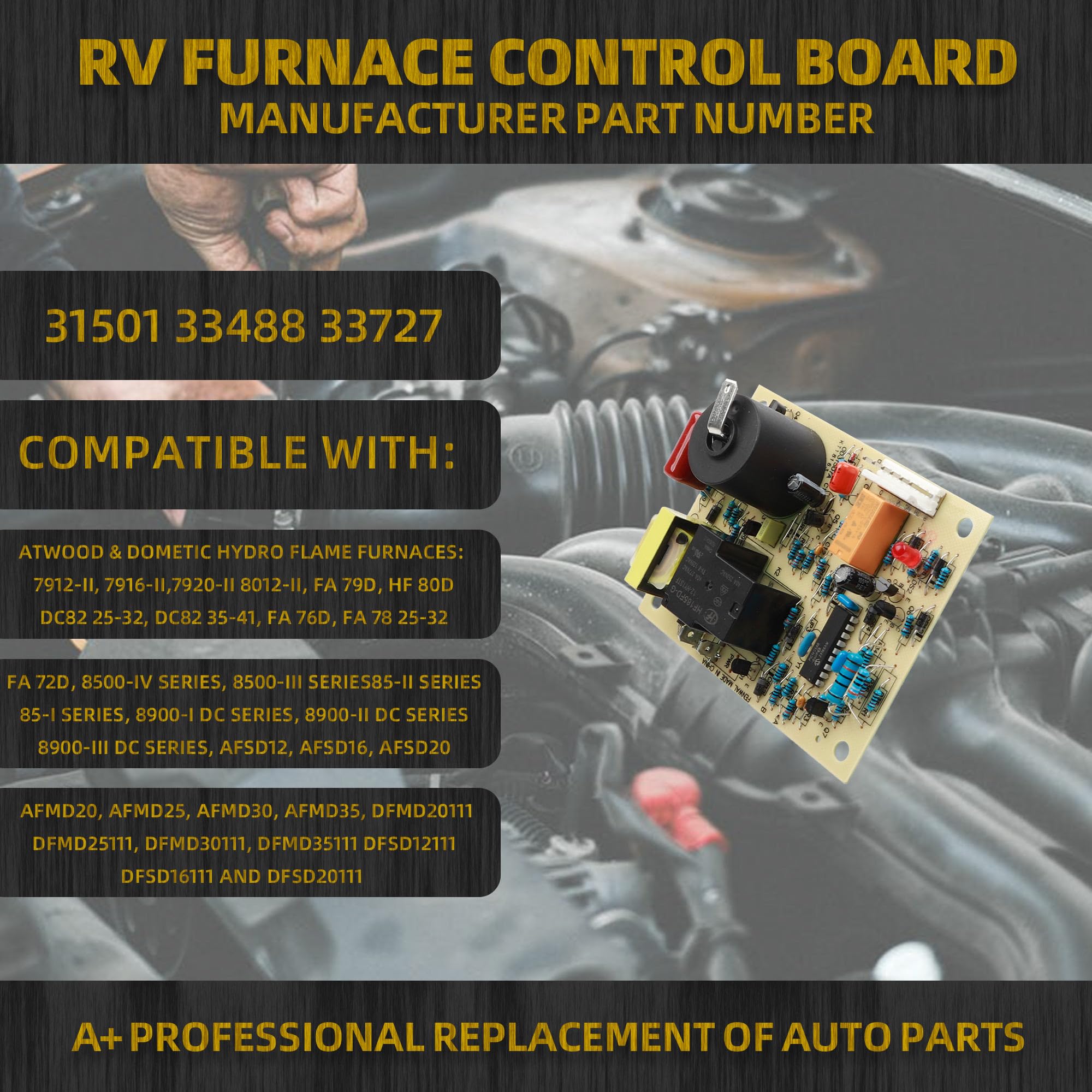 【Compatibility】Compatible with Atwood & Dometic Hydro Flame Furnaces: 7912-II, 7916-II, 7920-II, 8012-II, FA 79D, HF 80D, DC82 25-32, DC82 35-41, FA 76D, FA 78 25-32, FA 72D, 8500-IV Series, 8500-III Series, 85-II Series, 85-I Series, 8900-I DC Series, 8900-II DC Series, 8900-III DC Series, AFSD12, AFSD16, AFSD20, AFMD20, AFMD25, AFMD30, AFMD35, DFMD20111, DFMD25111, DFMD30111, DFMD35111 DFSD12111, DFSD16111 and DFSD20111.