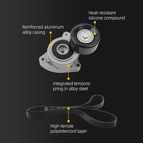【Complete Kit for Easy Installation】Includes one serpentine belt, one drive belt tensioner, and one pulleys. Everything needed for a quick and hassle-free installation with no special tools required.