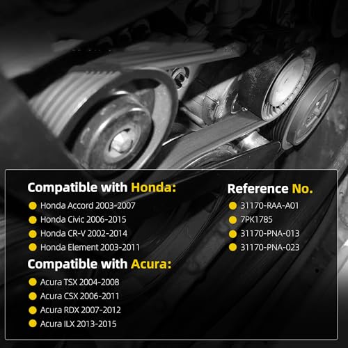 【Wide Compatibility】 Designed for Honda Accord 2003-2007, Civic 2006-2015, CR-V 2002-2014, Element 2003-2011; Acura TSX 2004-2008, Acura CSX 2006-2011, Acura RDX 2007-2012, Acura lLX 2013-2015. Each belt tensioner and tensioner pulley provides stable power transmission and reduces engine vibration.