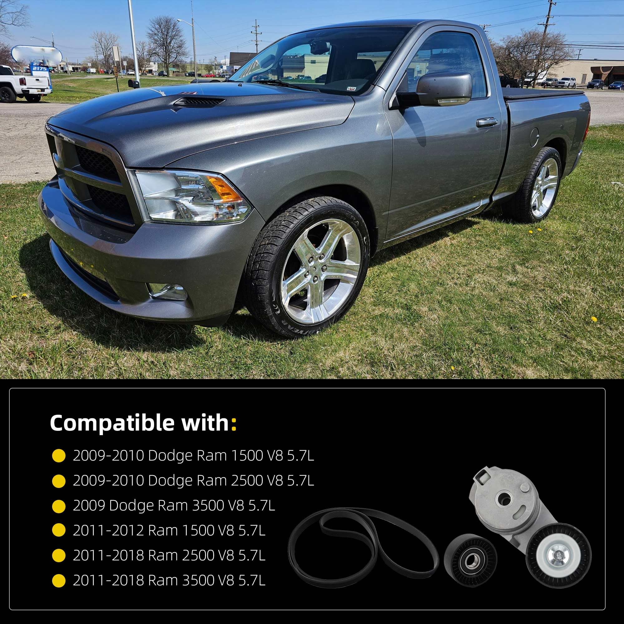 【Fitment】The Idler Pulley Kit fits for Dodge Ram 1500 2500 2009-2010 / Dodge Ram 3500 2009 5.7L V8 ; Ram 1500 2500 3500 2011-2018 5.7L V8