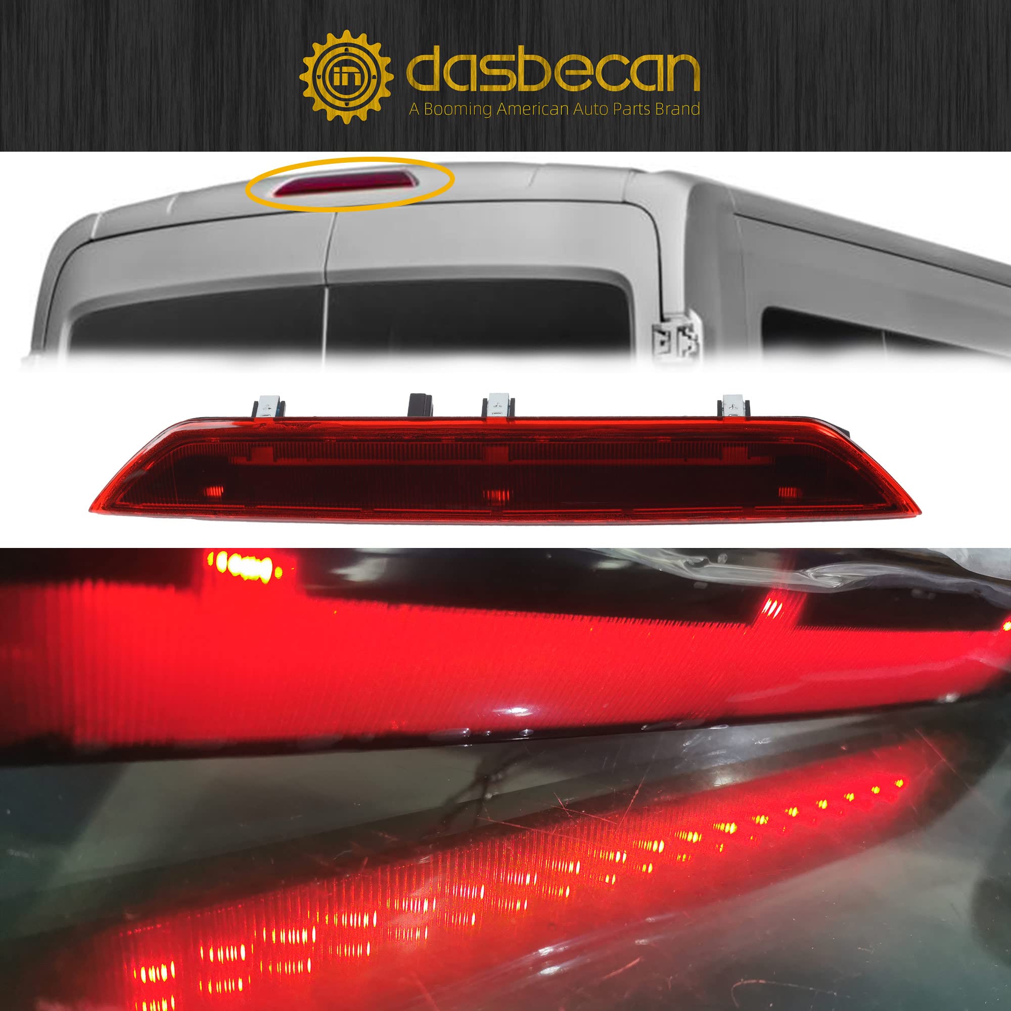 【Compatible With】Dasbecan High Mount Brake Light Compatible with Ford transit 150 Ford transit 250 Ford transit 350 2015 2016 2017 2018 2019 This product is not suitable for 2.5L models, please check your model before placing an order.