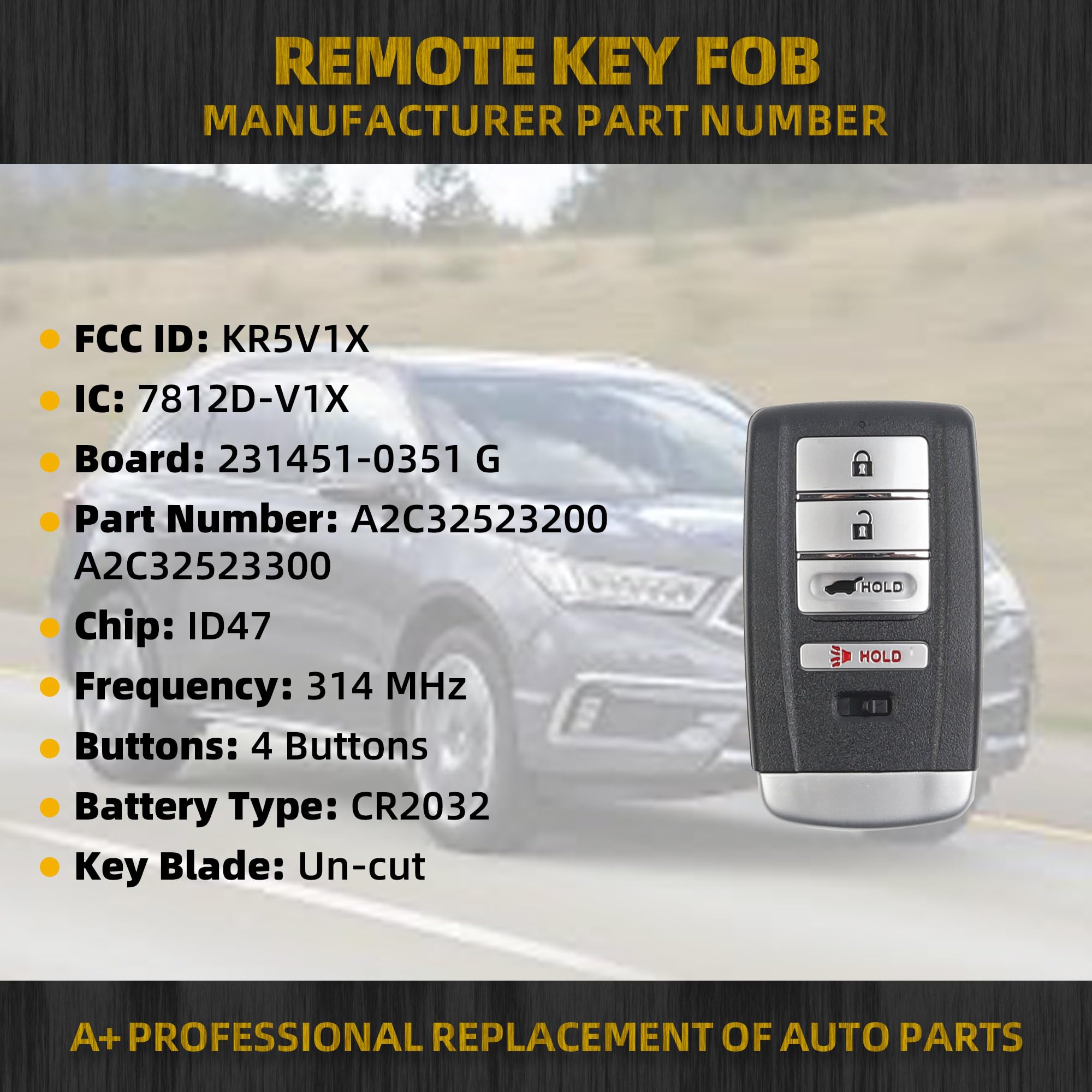 Button: 4buttons (lock, unlock, remote start, trunk, Panic). Please check OE number/FCC ID and product picture with original one before purchase.