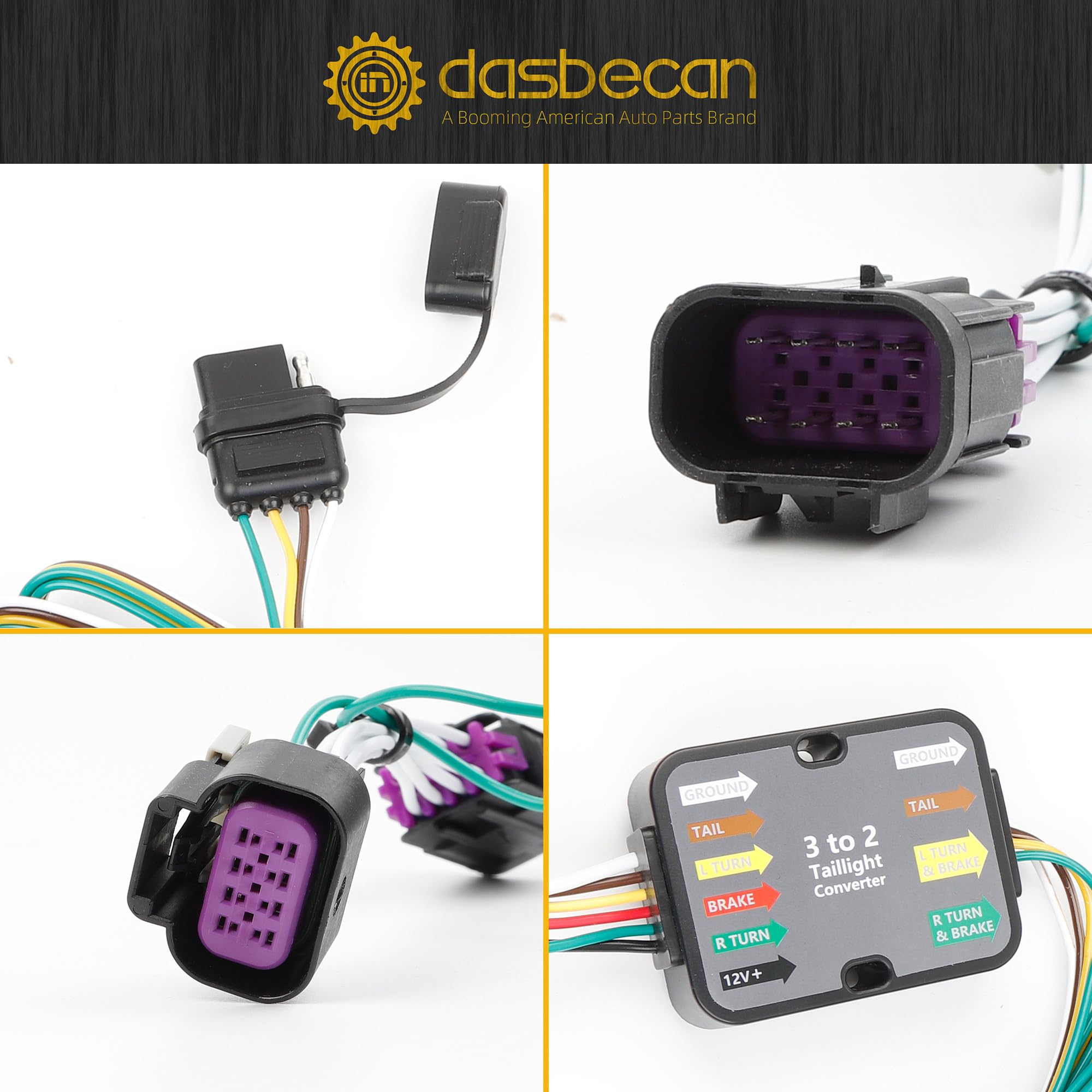 【Standard 4-Way Output】The wiring harness provides a Standard 4-way flat socket output, for plugging in and towing a trailer, connecting easily to trailer tail lights, turn signals and brake lights. 4-way trailer light wiring is popular on a variety of trailers.