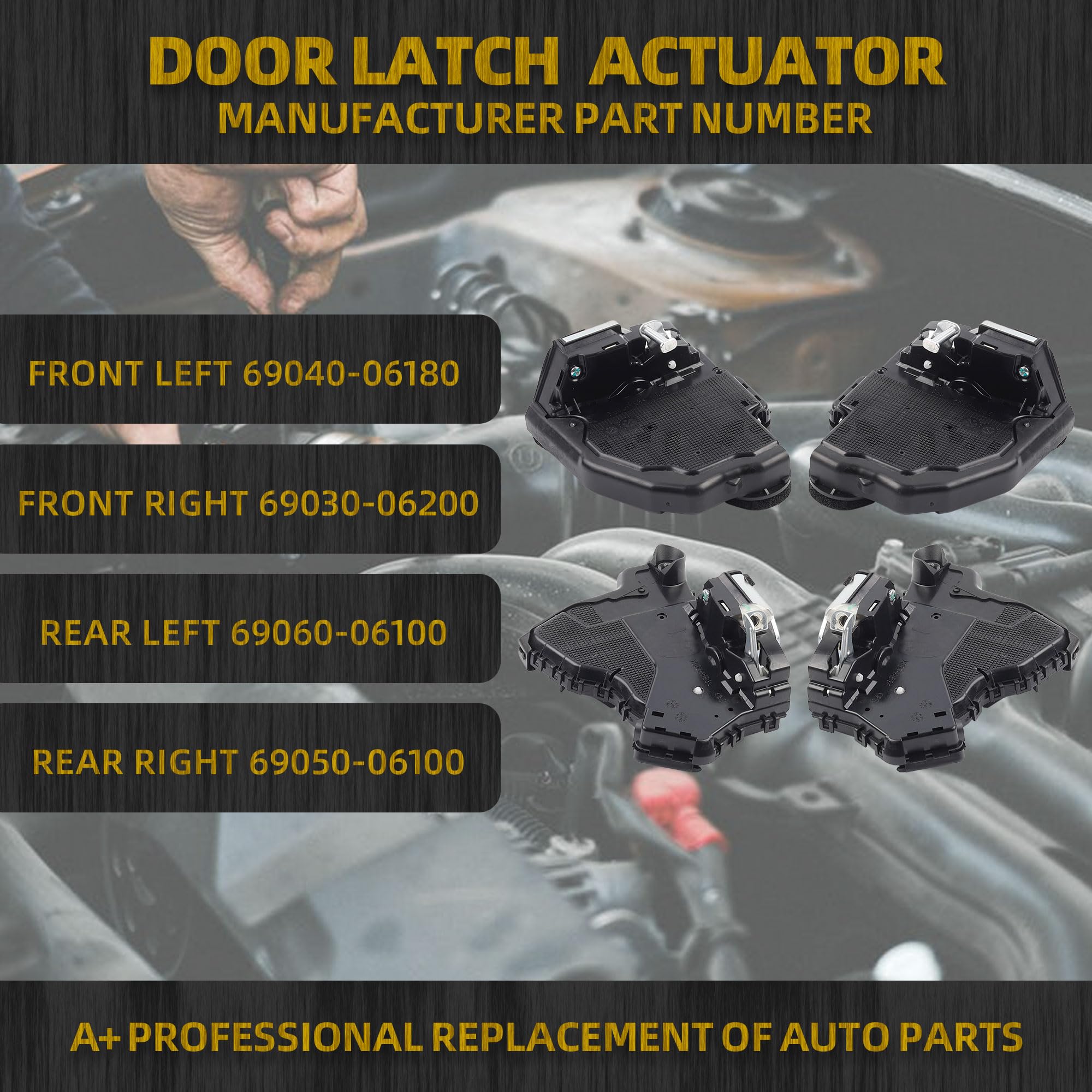 Replaces OE Number: Front Left 69040-06180 69040-0C050 69040-42250 931-401, Front Right 69030-06200 69030-0C050 69030-42230 931-403, Rear Left 69060-06100 6906033120 931-405, Rear Right 69050-06100 6905033120 931404.