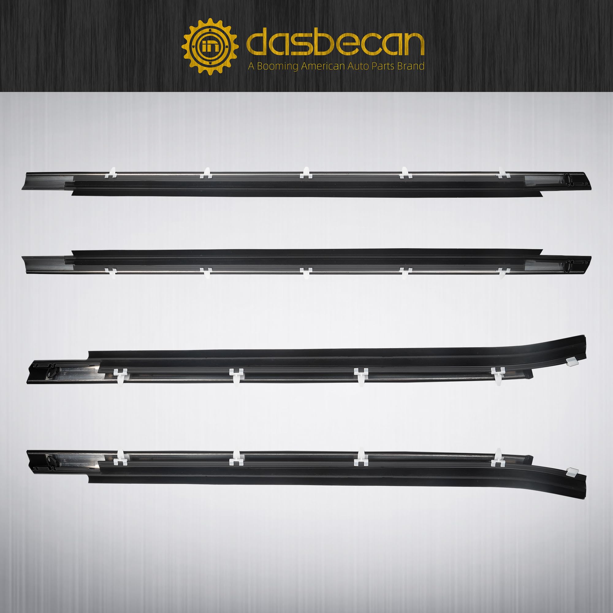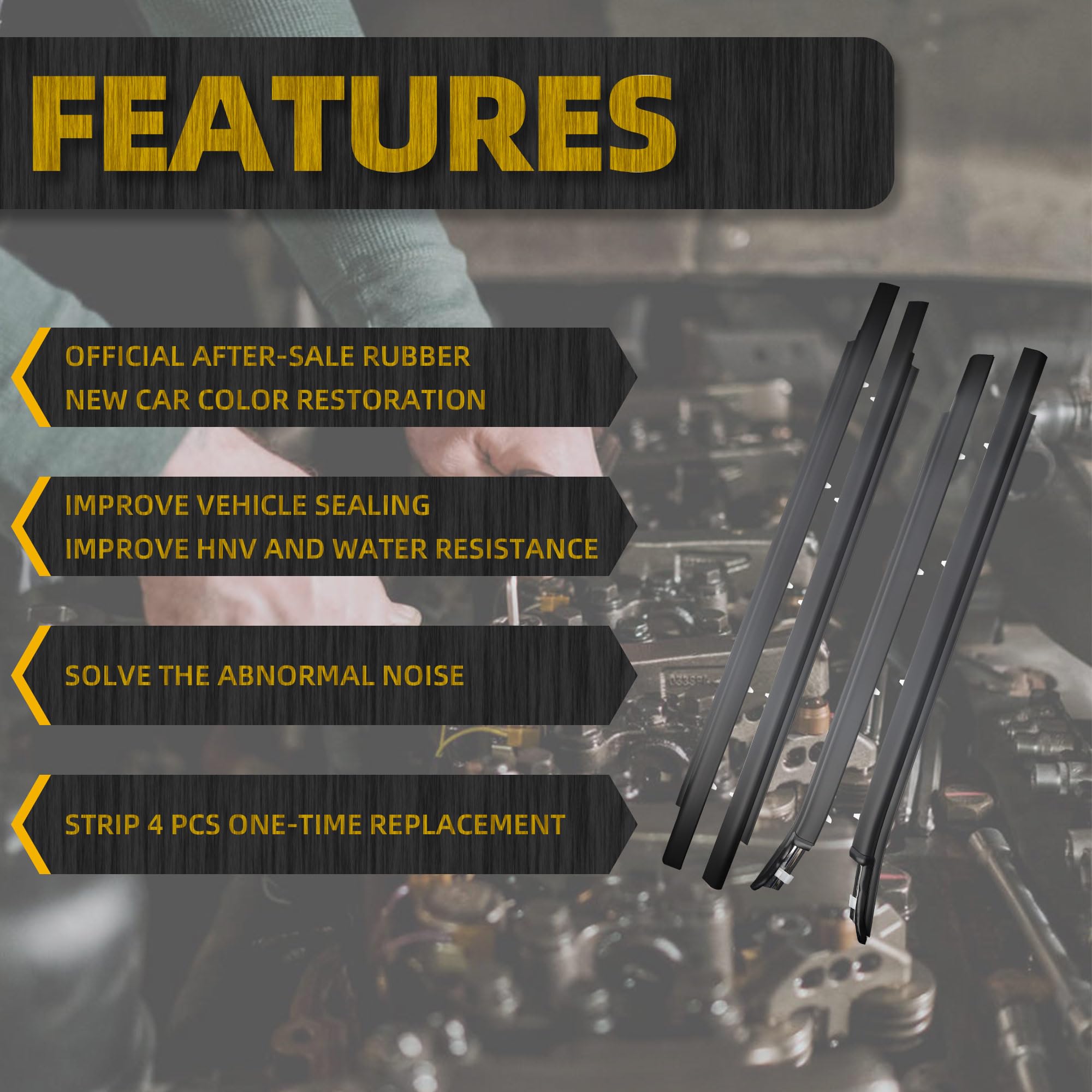 【Package list】Front Door Window Belt Weatherstrip x2pcs, Rear Door Window Trim Belt Weatherstrip x2pcs.