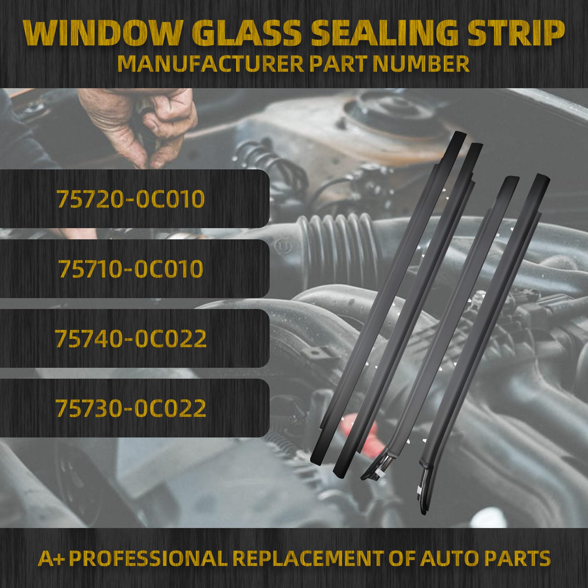 【OE Number】The door window trim belt replace#75720-0C010,75710-0C010,75740-0C022,75730-0C022.