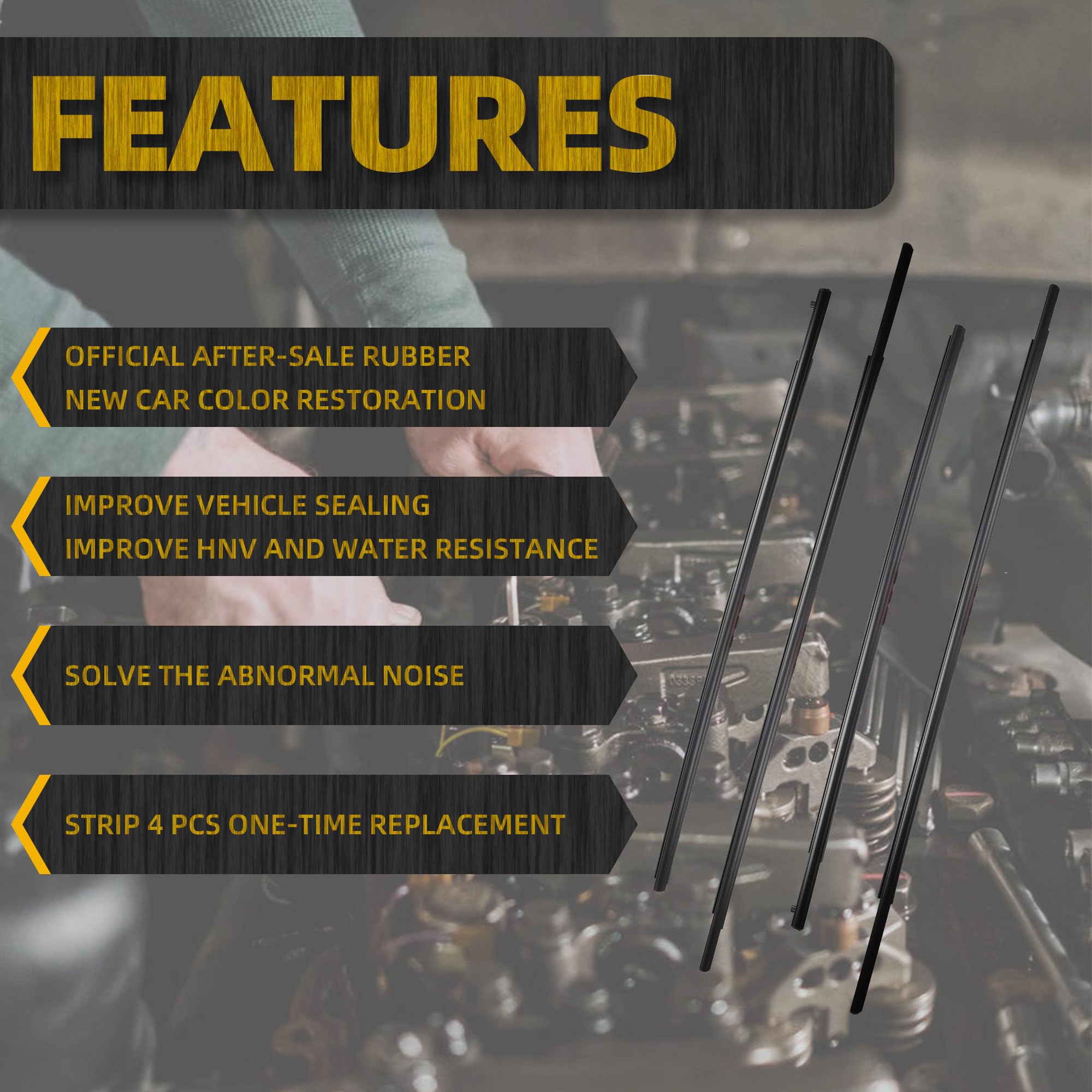 【Installation】Our weather stripping is designed to be simple and convenient to install. You do not need any professional skills or special tools to install it on your car windows. Just follow the step-by-step instructions, and the installation can be completed within a few minutes.