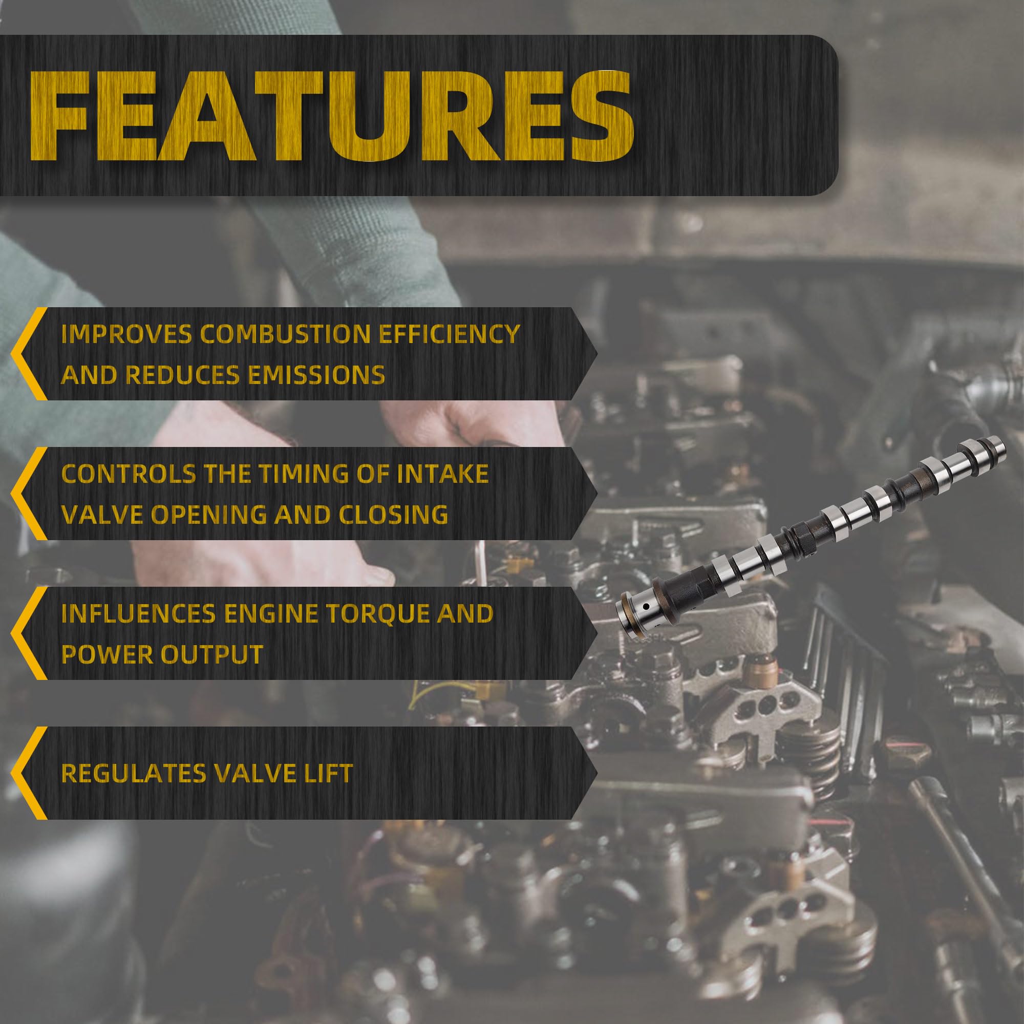 【Features】Made from high-quality alloy material, our intake Camshaft undergoes strengthening heat treatment, making it long-lasting, wear-resistant, and high-temperature resistant, ensuring a long service life.