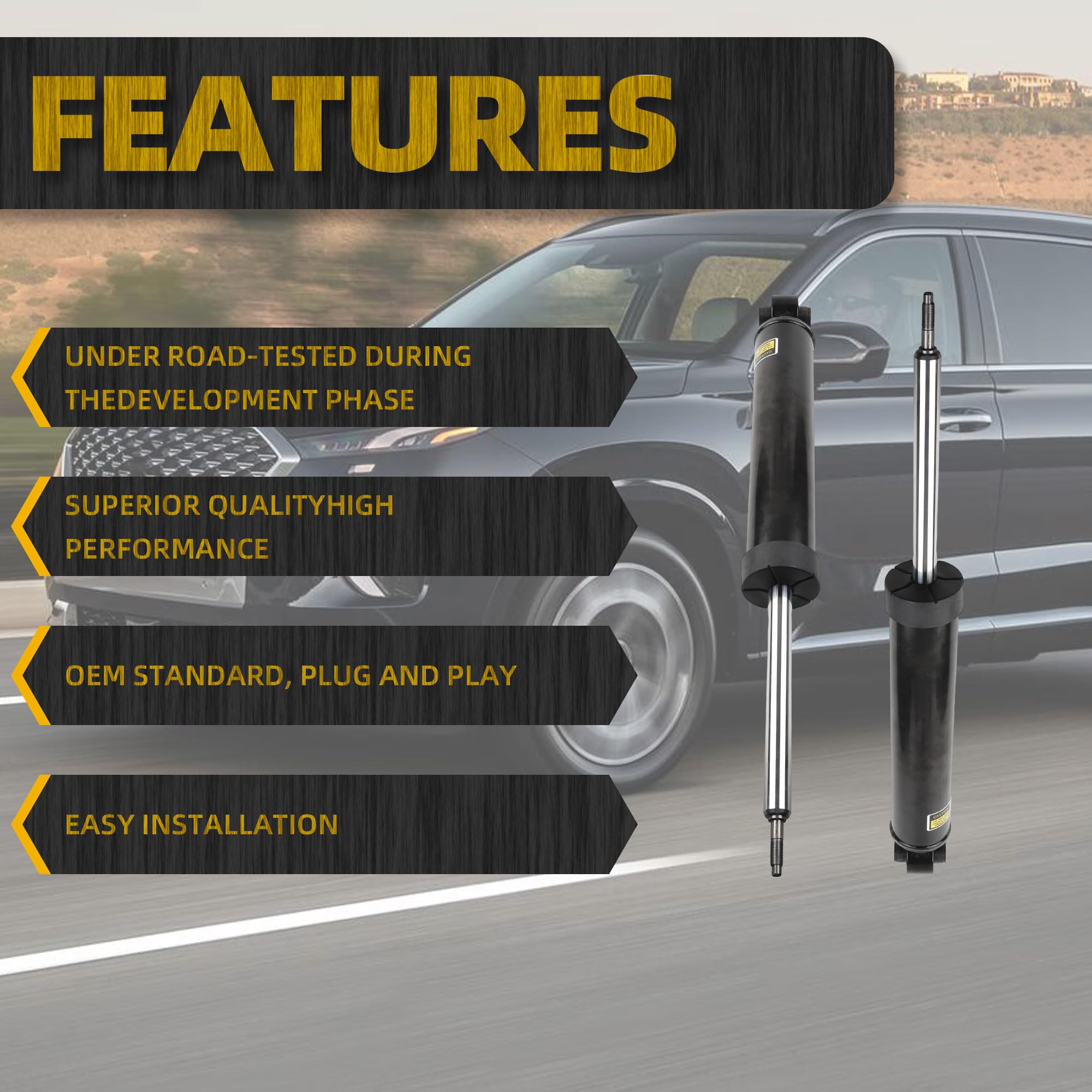 Self-Leveling Capability: Engineered with self-leveling technology, these rear shock absorbers automatically adjust to varying loads, providing consistent handling and stability, enhancing your driving experience regardless of cargo weight.