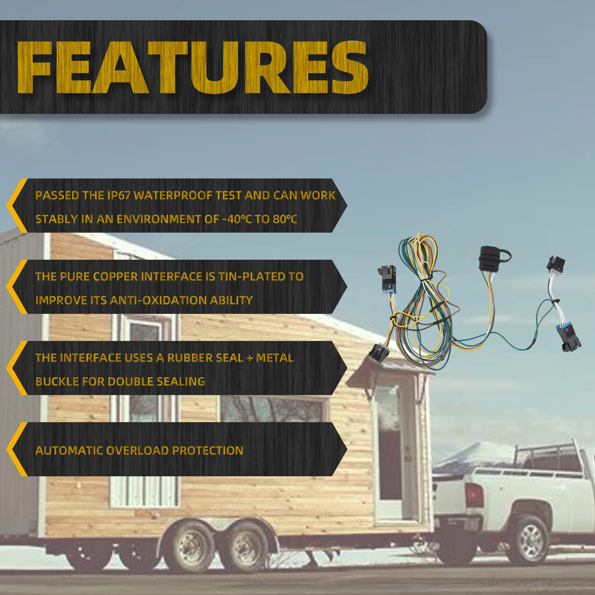【Easy to install, plug and play】No complicated wire splicing required; this trailer wiring harness simply plugs directly into your existing wiring system, quickly establishing a connection between your vehicle and trailer.