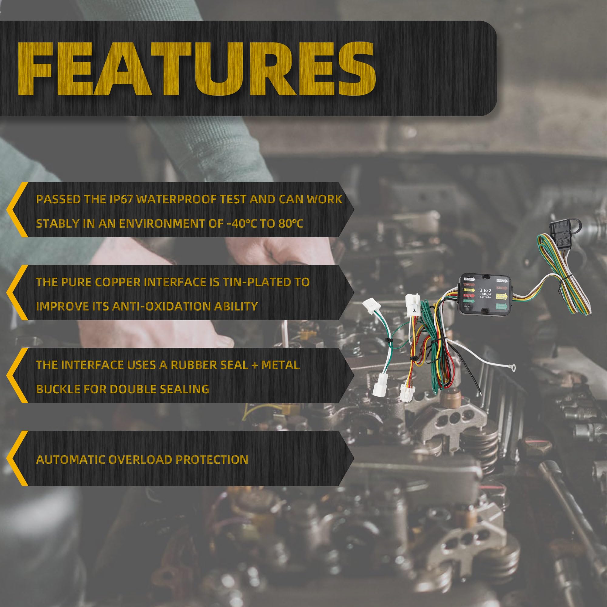 【Easy to install, plug and play】No complicated wire splicing required; this trailer wiring harness simply plugs directly into your existing wiring system, quickly establishing a connection between your vehicle and trailer.