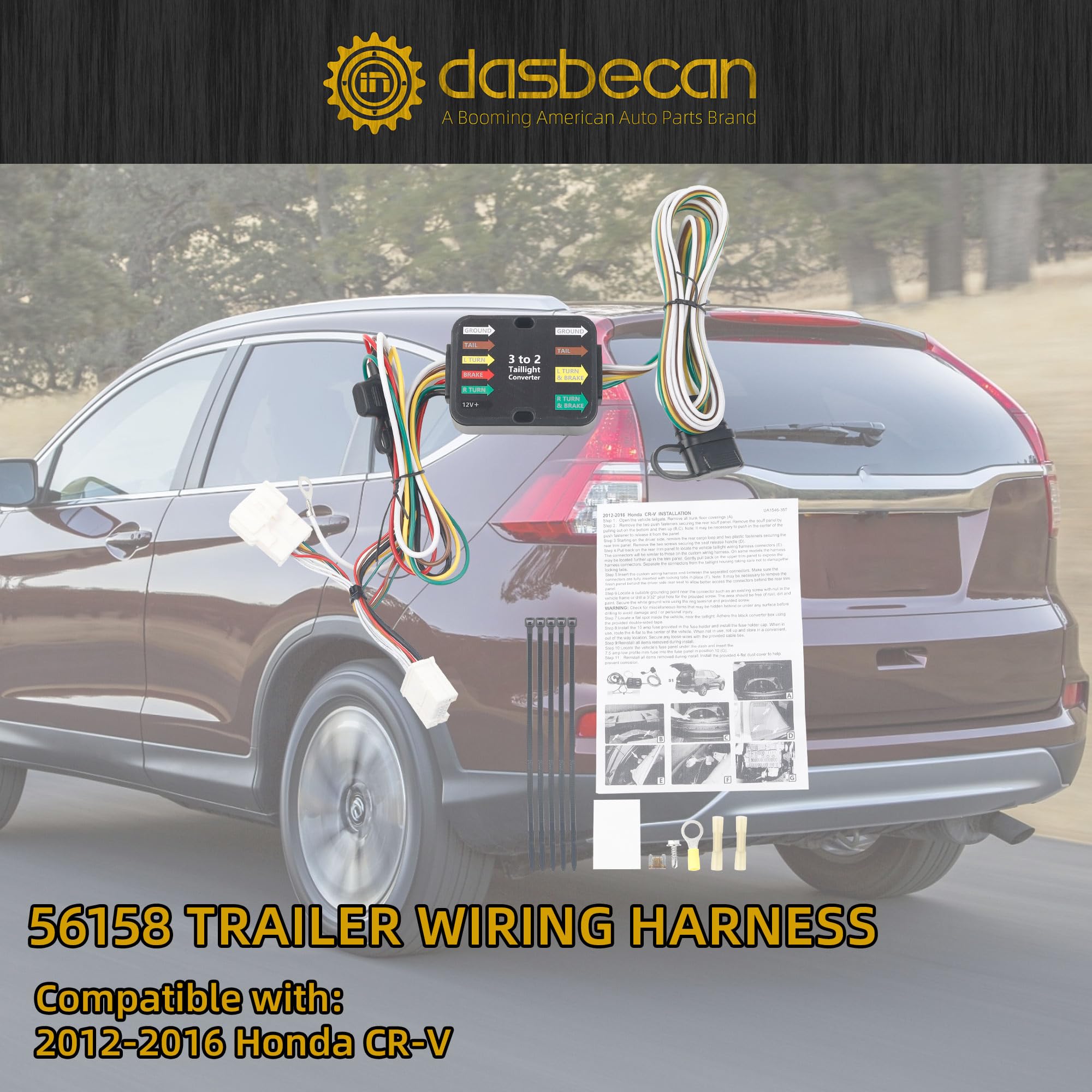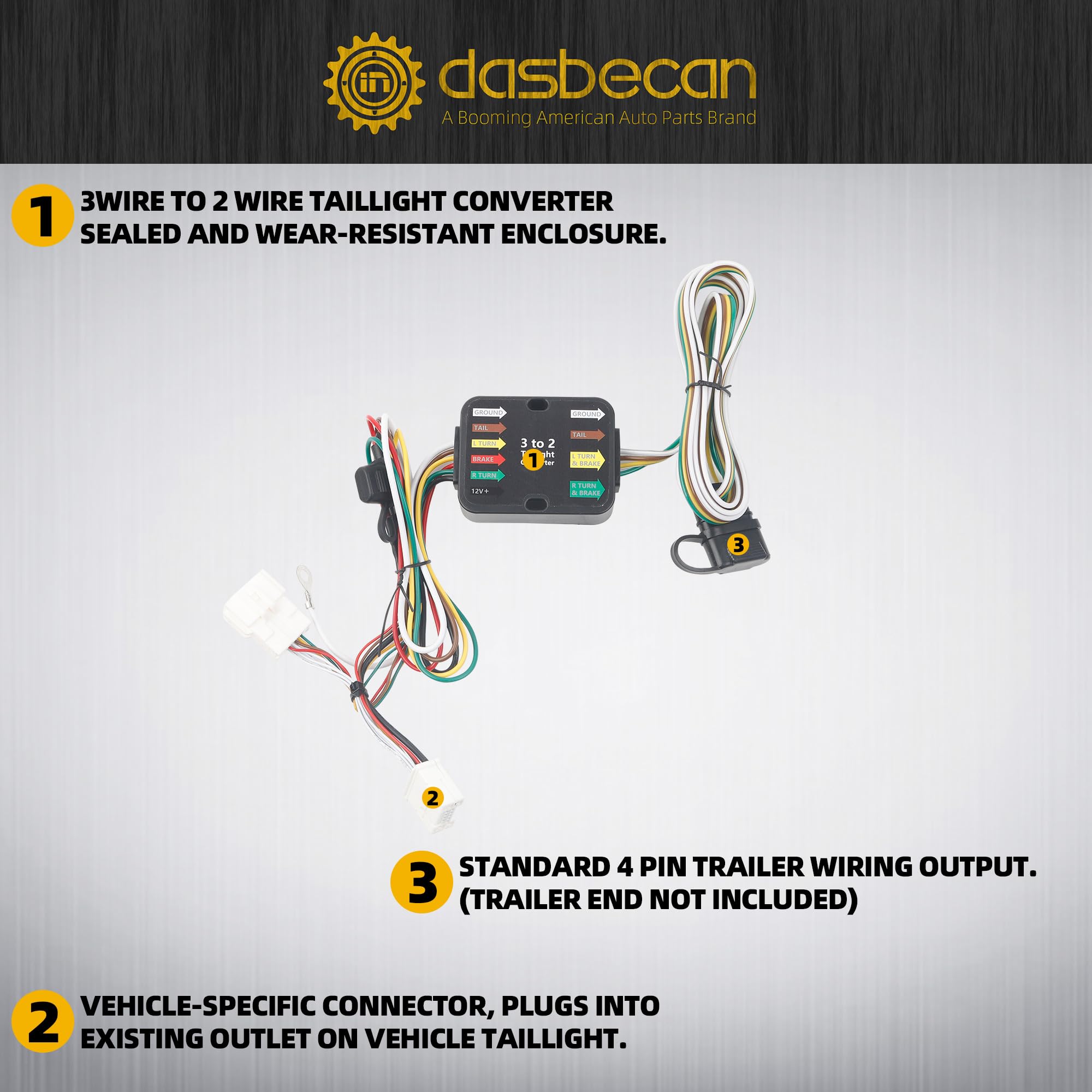Easy Installation: Dasbecan 56158 Towing Wire Harness Kit requires no splicing and no cutting, Quickly and easily install a 4-way trailer connector on your vehicle.
