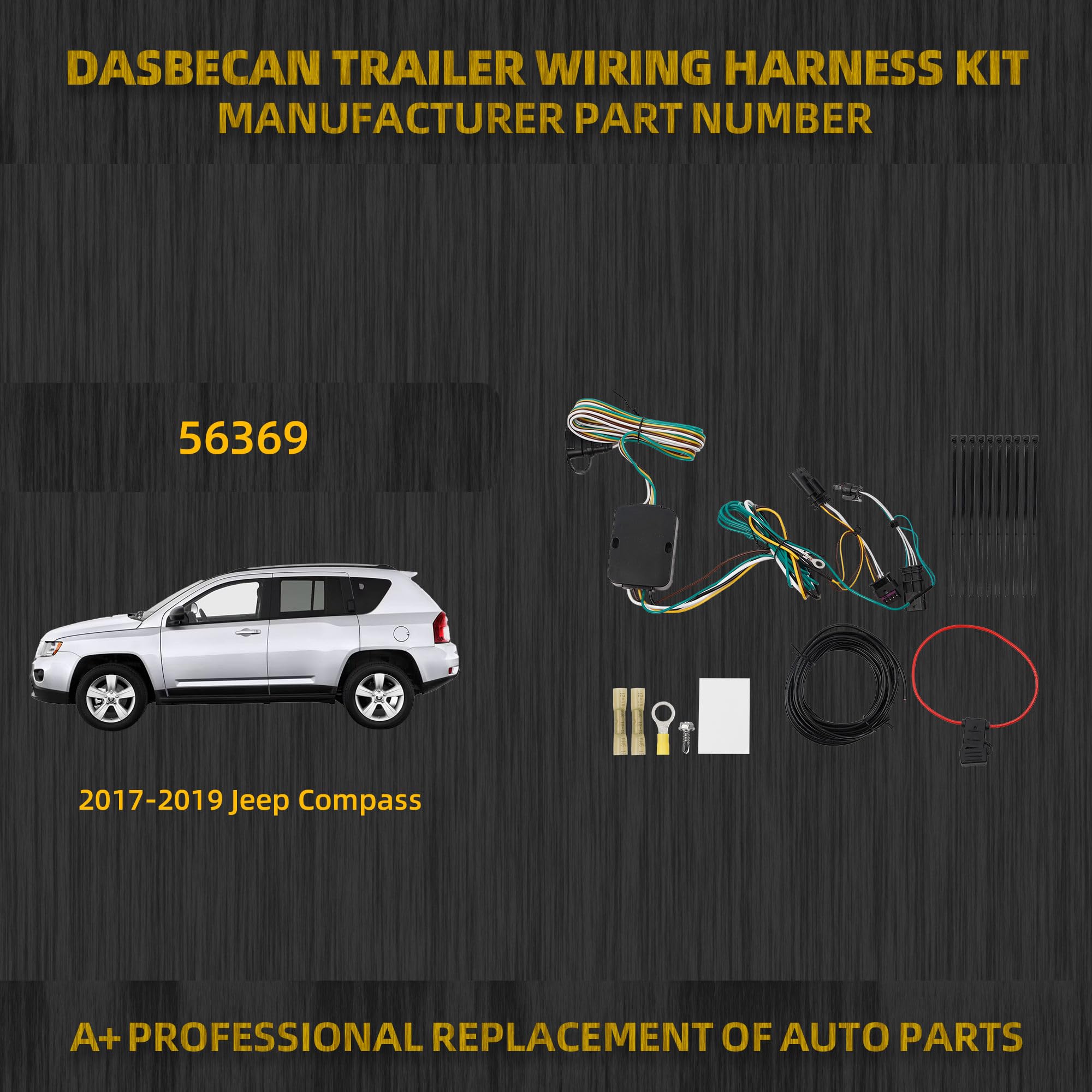 【Perfect Fit】 The trailer wiring harness kit is designed specifically for Jeep Compass 2017-2019, factory tow package required, this aftermarket vehicle-trailer wiring harness ensures a proper fit.