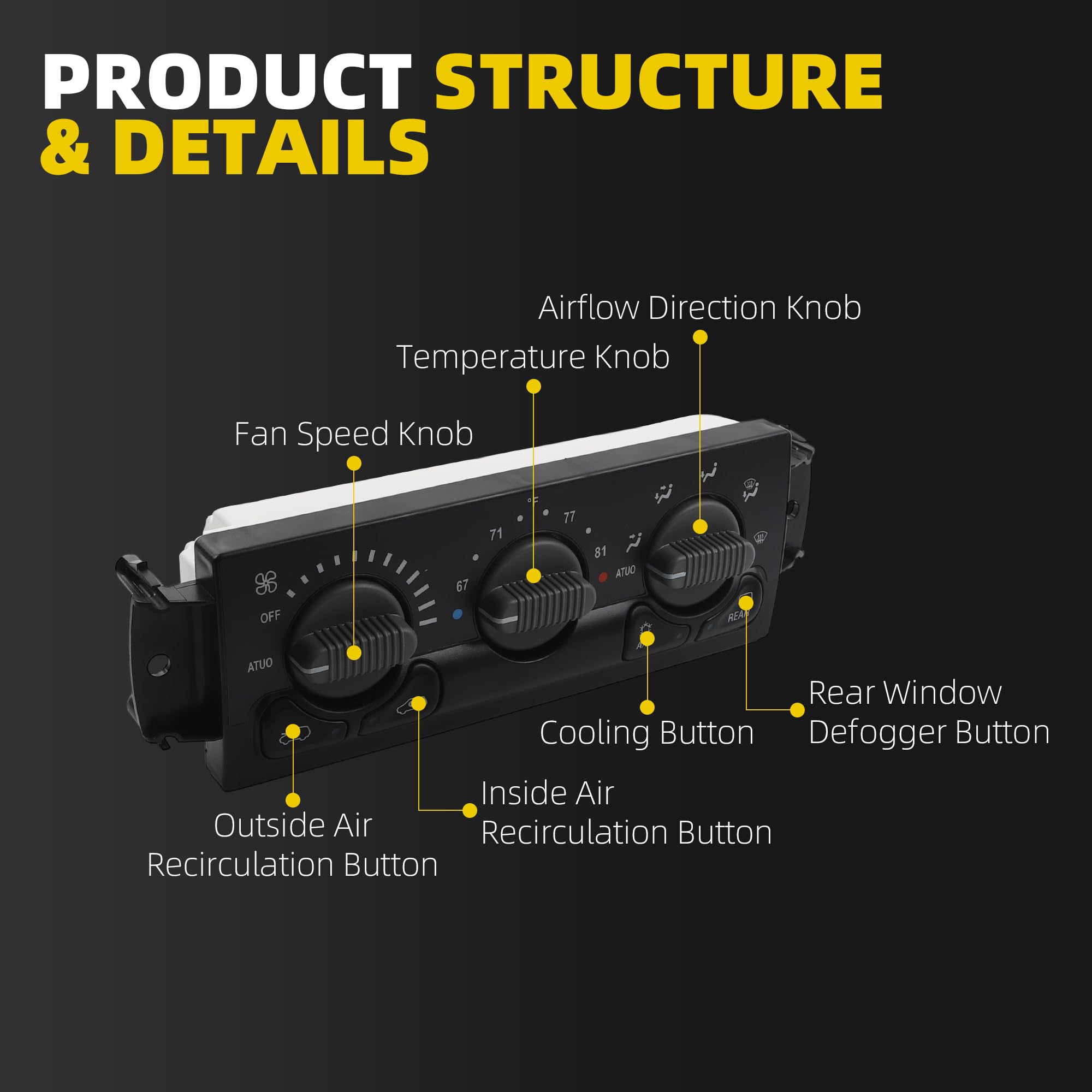【Full Automatic Climate Control Functionality】Retains AUTO mode, precise temperature regulation, rear defrost, MAX A/C, fresh/recirculation air switching; restores complete HVAC operation without dealer programming.