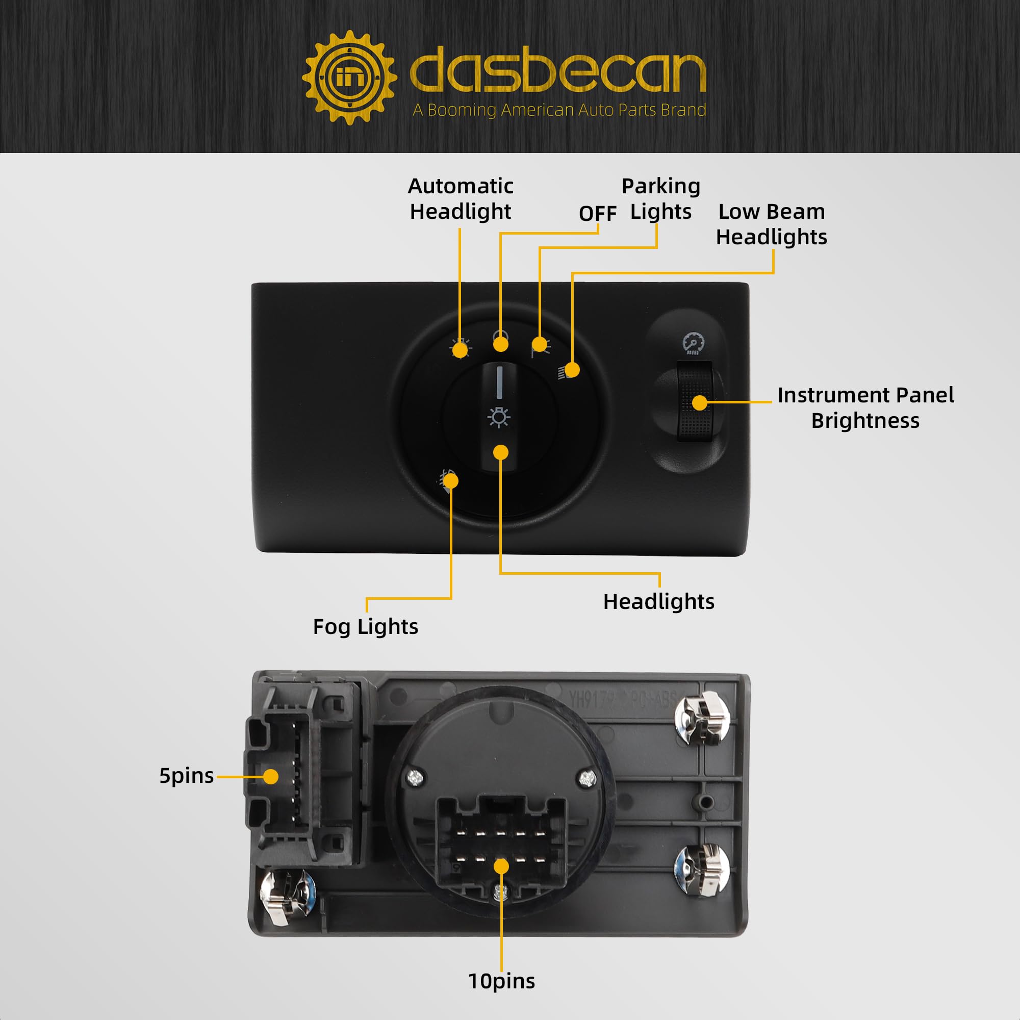 Specifications: Product Type: Headlight Switch, Color: Black; Connector Gender: Female; Connector Quantity: 2; Shape: Rectangular; Number of interfaces: 10+5; Terminal Type: Blade