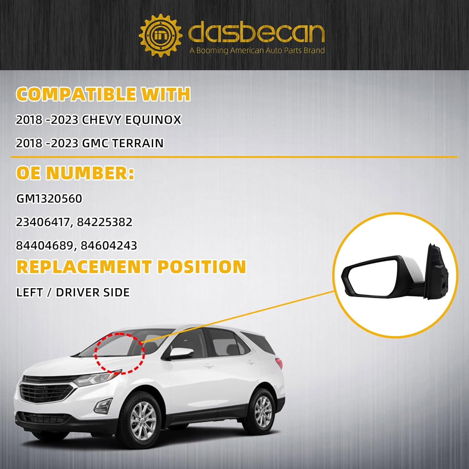【Comaptible With】The Driver Side Mirror Assembly Compatible With Chevrolet Equinox 2018 2019 2020 2021 2022 2023 2024; GMC Terrain 2018 2019 2020 2021 2022 2023 2024 (5PINS)