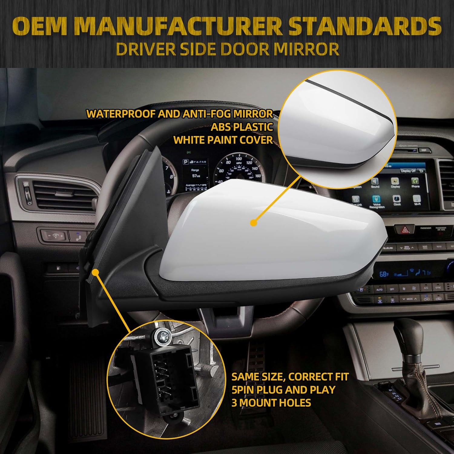 【Advantage】White Paint Cover, The Paint Color Is The Same As the Paint Color of The Original Cover; 5PINS, Plug And Play. The Mirror Doesn't Need Additional Modification, It Is a Complete Mirror Assembly
