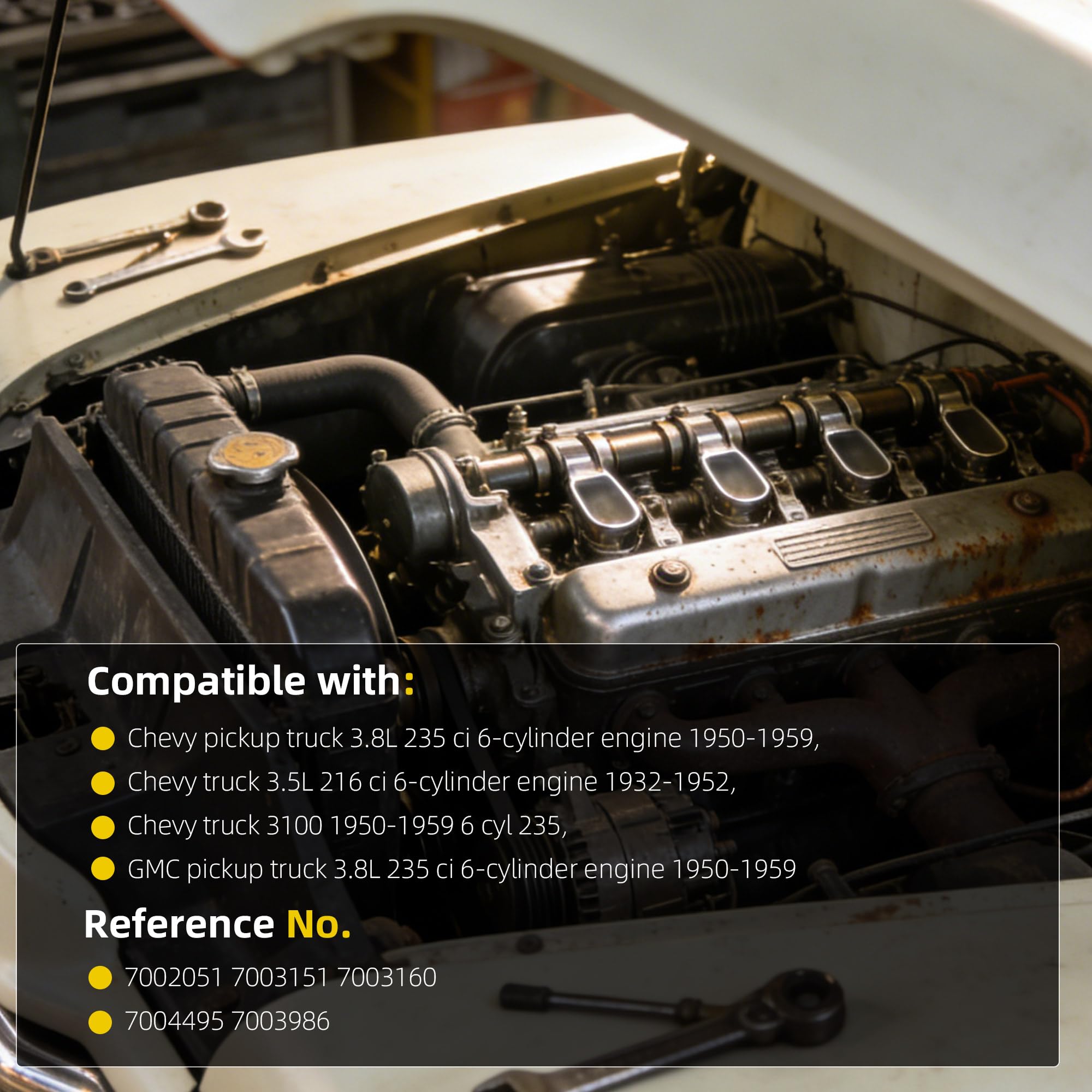 【Comptiable With Chevy】 Chevy pickup truck 3.8L 235 ci 6-cylinder engine 1950-1959; Chevy truck 3.5L 216 ci 6-cylinder engine 1932-1952; Chevy truck 3100 1950-1959 6 cyl 235;