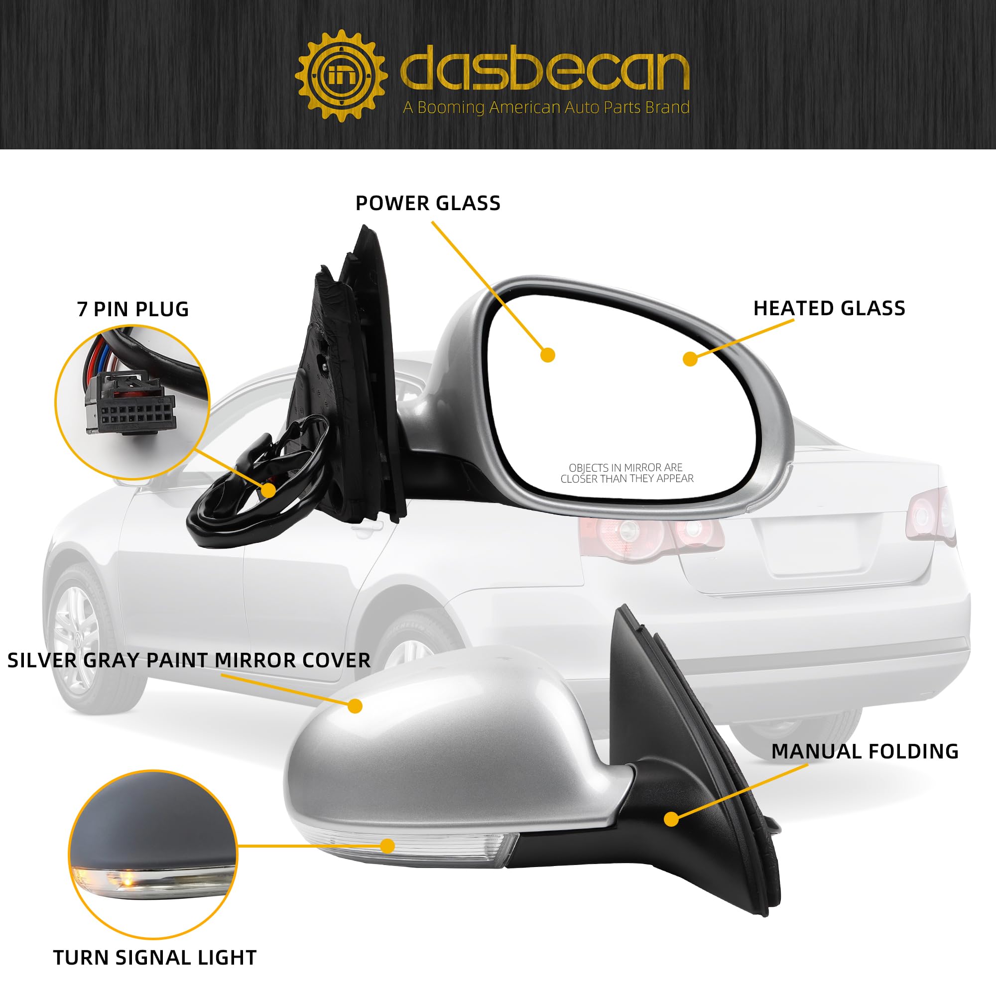 【Comaptible With】The Passenger Side Mirror Compatible With 2005 2006 2007 2008 2009 2010 Volkswagen Jetta(Silver Gray Cover)