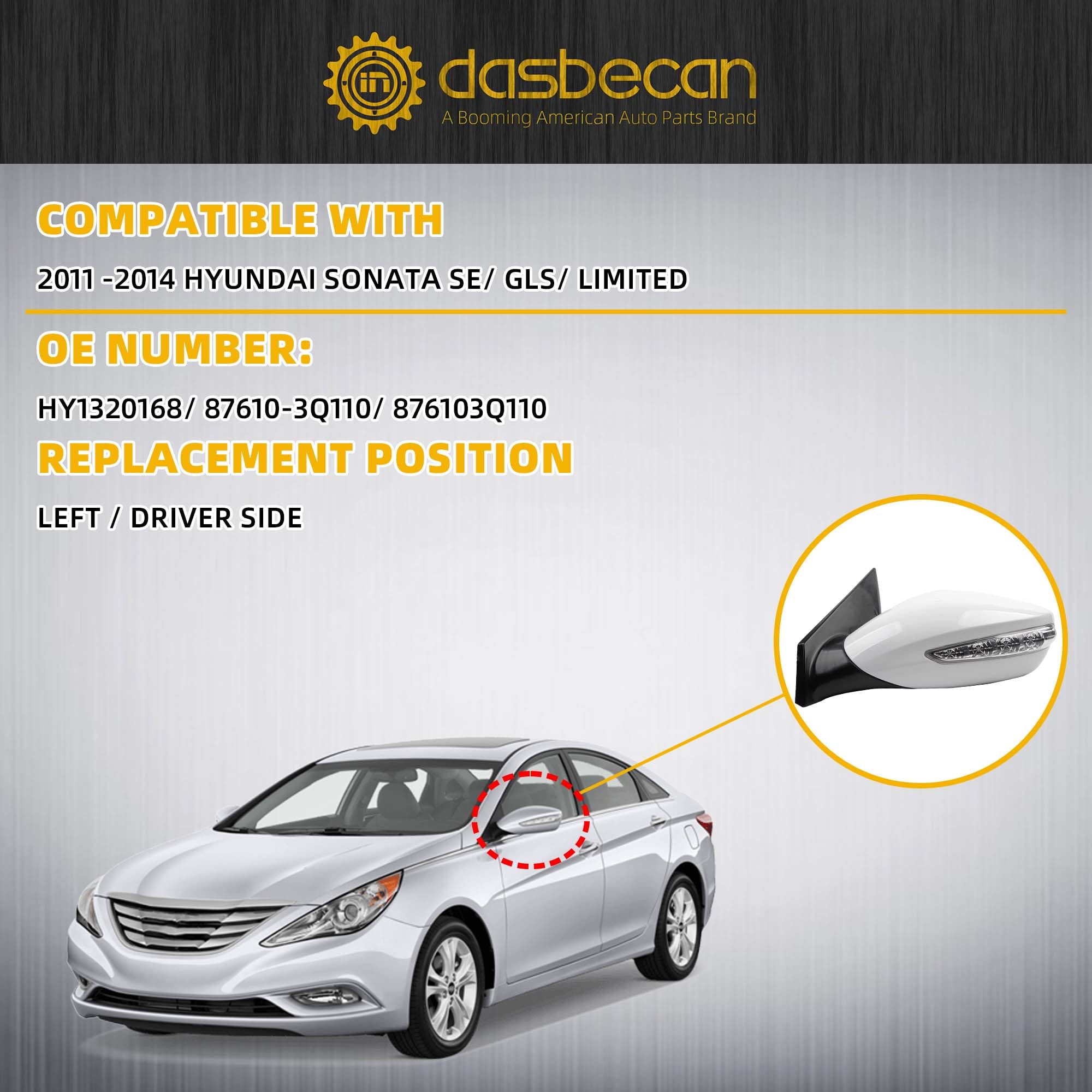 【Part Number】The Part Number of Side Mirror Assembly is HY1320168, 87610-3Q110, 876103Q110. Please Confirm Your Vehicle Model And Part Number Before Purchase