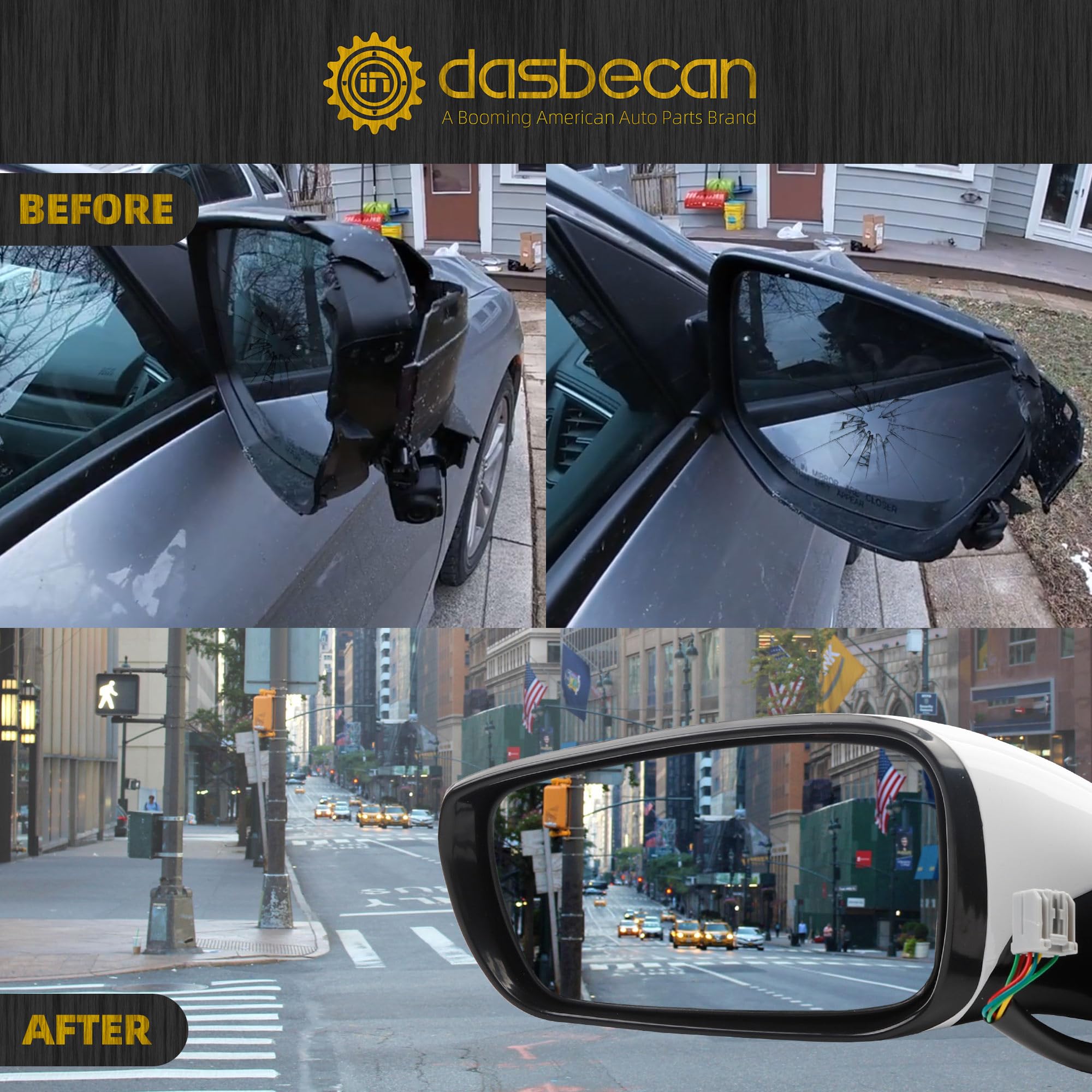 【Feature】The Left Door Side Mirror Equipped With Power Glass, LED Turn Signal, Power Heated And Manual Folding Functions. Without Blind Spot. White Mirror Cover, Match car body's paint