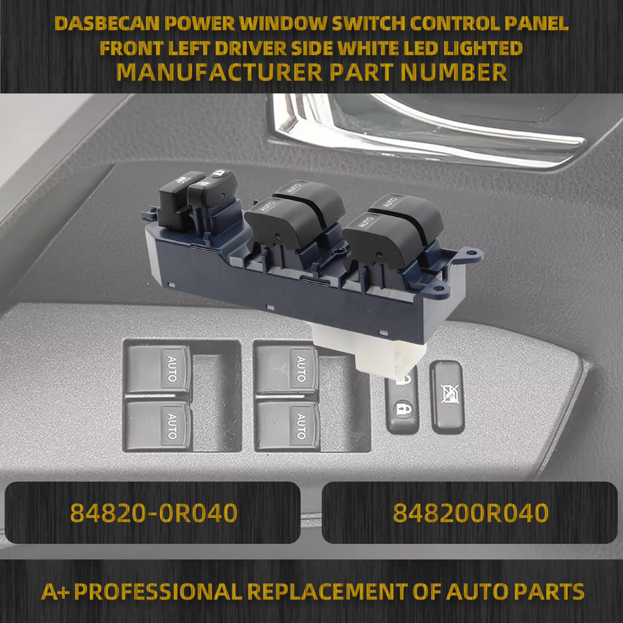 【Description】This white LED switch located front driver side window, which can easily control all 4 power windows up and down, window locks, door locks and adjust mirror.