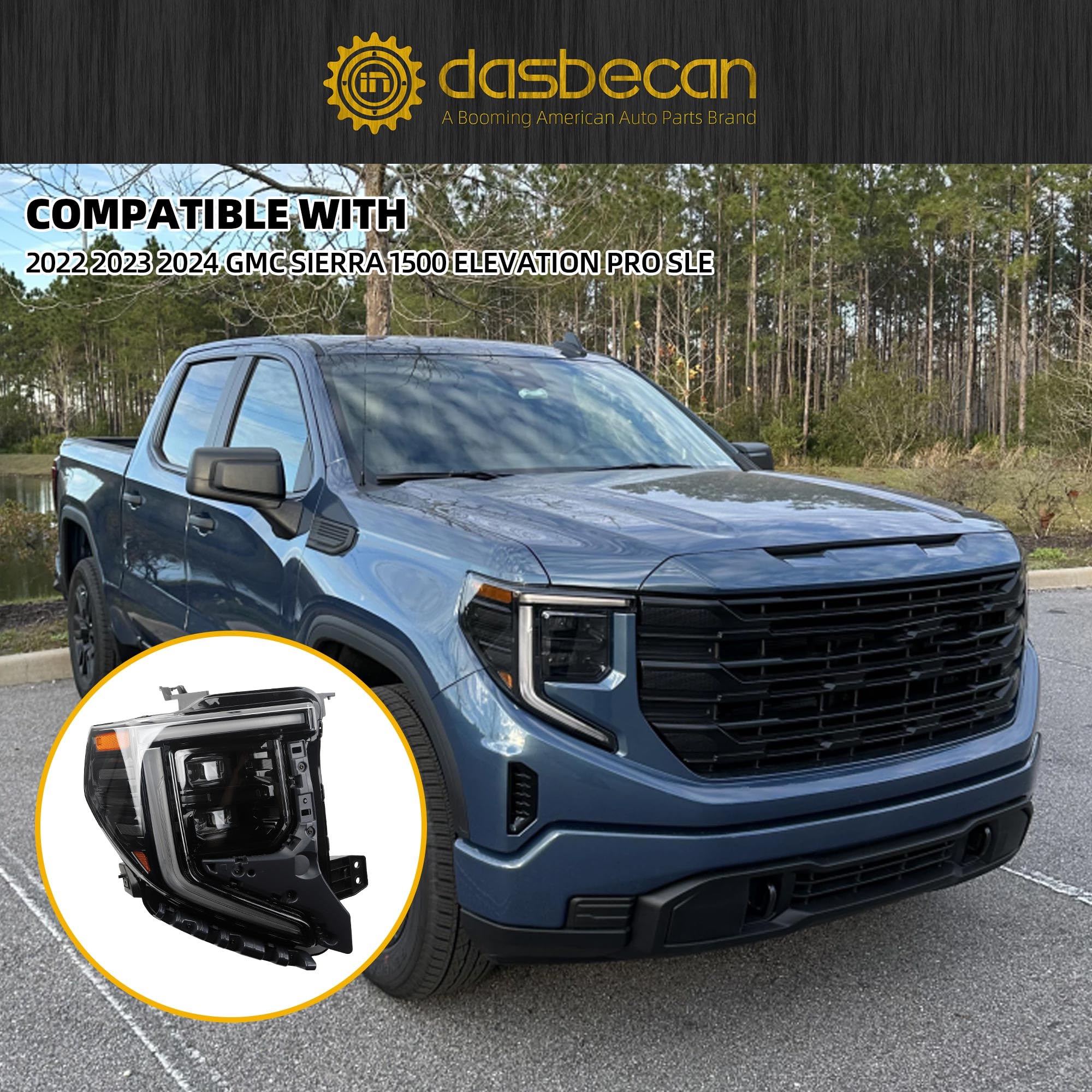 【Fitment】85604122 Headlights compatible with 2022 2023 2024 GMC Sierra 1500 PRO/SLE/ELEVATION.