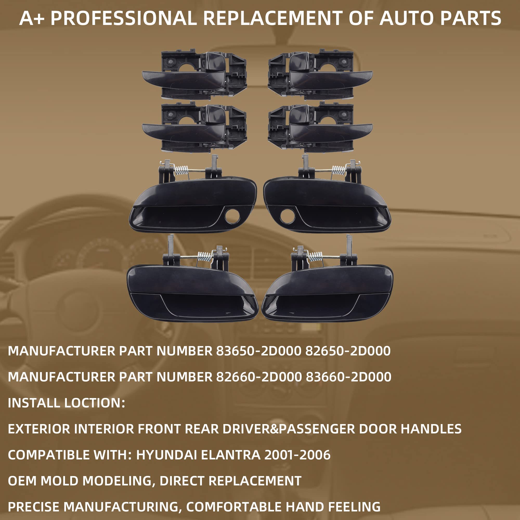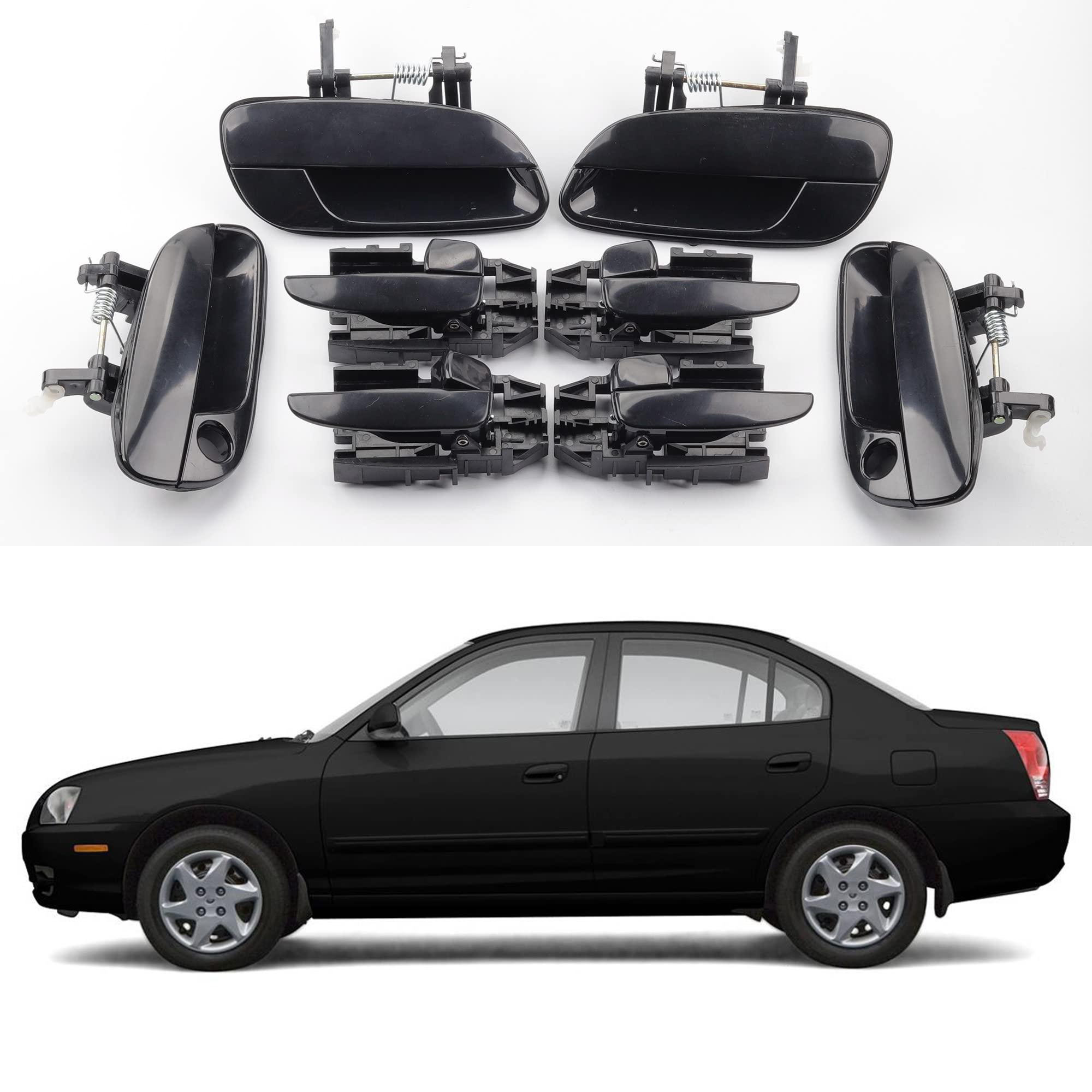 Comes with all door handles (outside, inside, front, back.) it fit well. Recommend to watch a YouTube video before hand to see in inside of your Hyundai Elantra to get a good idea on how it looks.