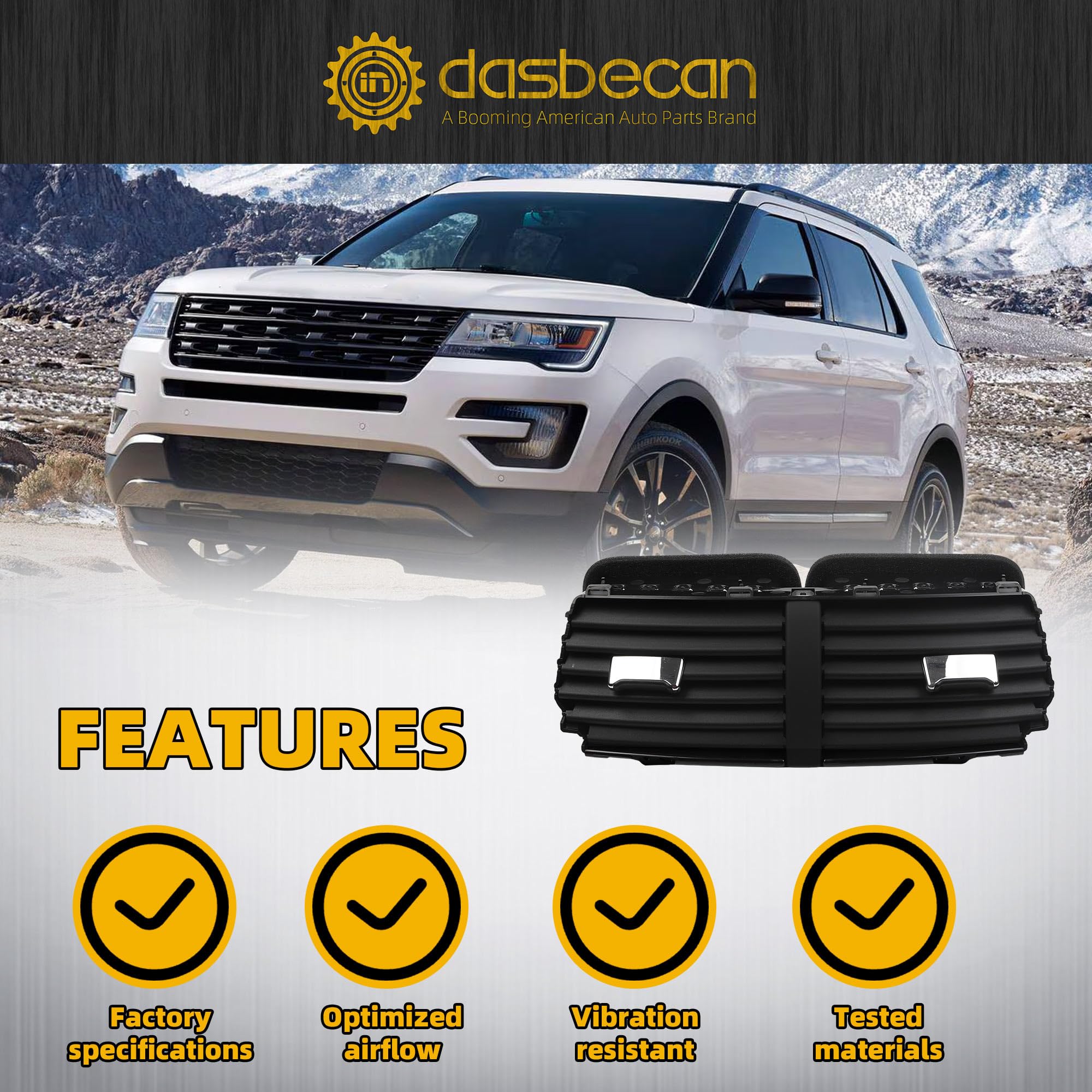 Fitment: The Center Dashboard Air Outlet Louver Compatible with 2011 2012 2013 2014 2015 Ford Explorer.