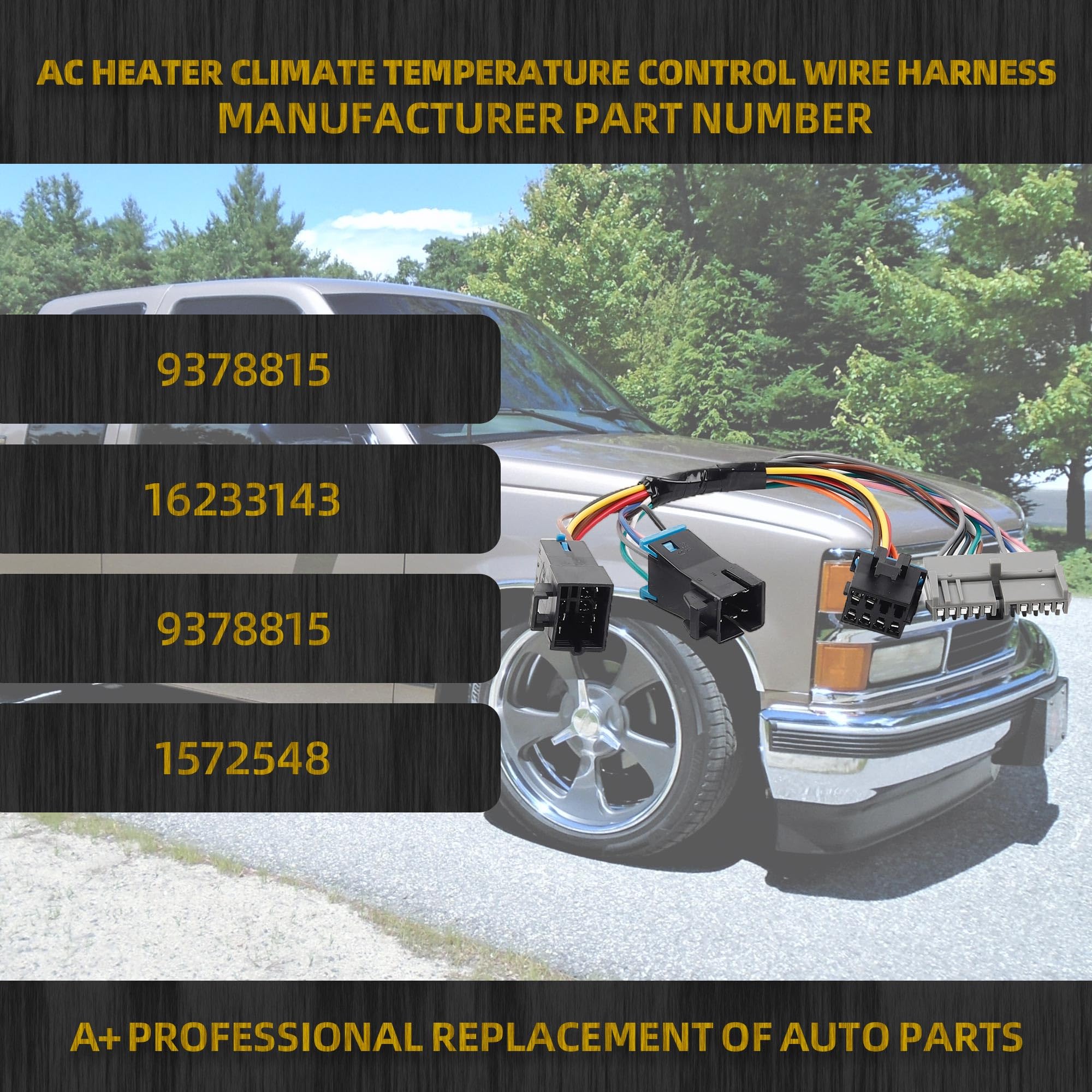 Perfect Fit: The A/C Heater Climate Control Temperature Control Wire Harnesst Compatible with Chevy C1500 C2500 C3500 K1500 K2500 Silverado Suburban Tahoe 1995 GMC C1500 C2500 C3500 K1500 K2500 K3500 Sierra Suburban Yukon 1995.